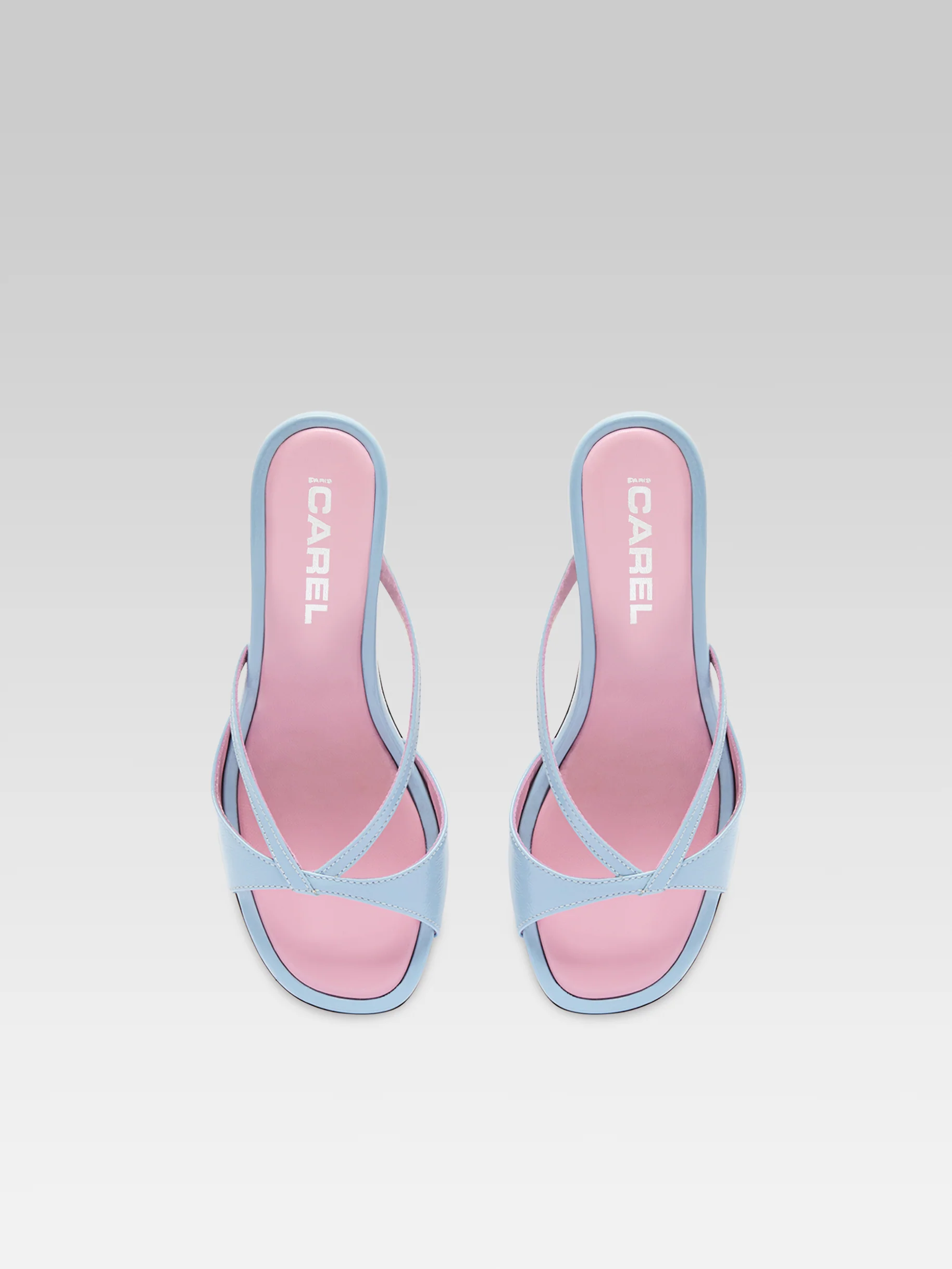 Athena – Sky blue leather strappy mules