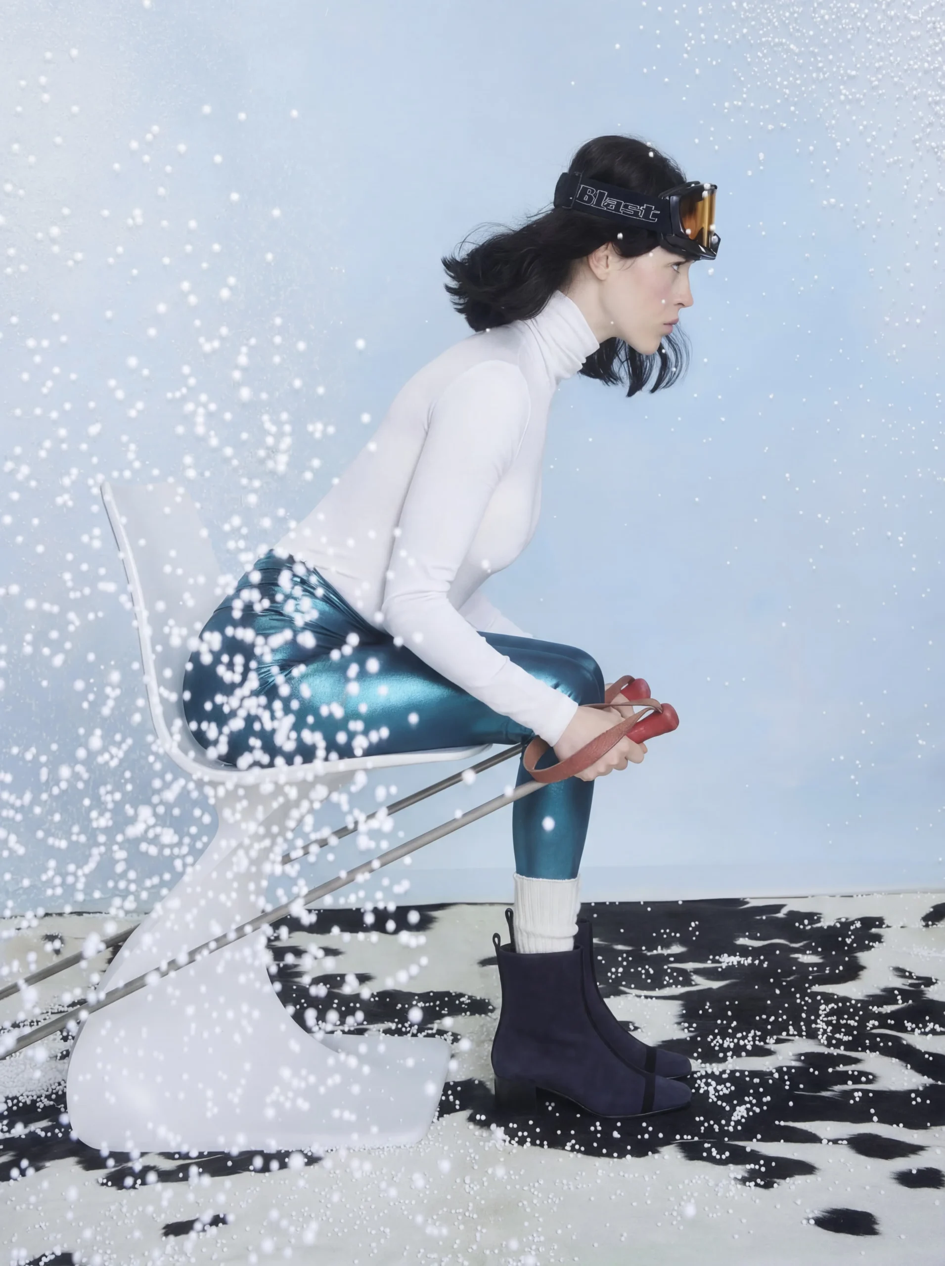 This ankle boot is a variation of our iconic Estime which takes its shape and its 4cm trotter heel. This very graphic look structured by the “T” upper is inspired by Audrey Hepburn in reference to her sixties spirit. This model is handcrafted in Italy. Furniture : India Mahdavi