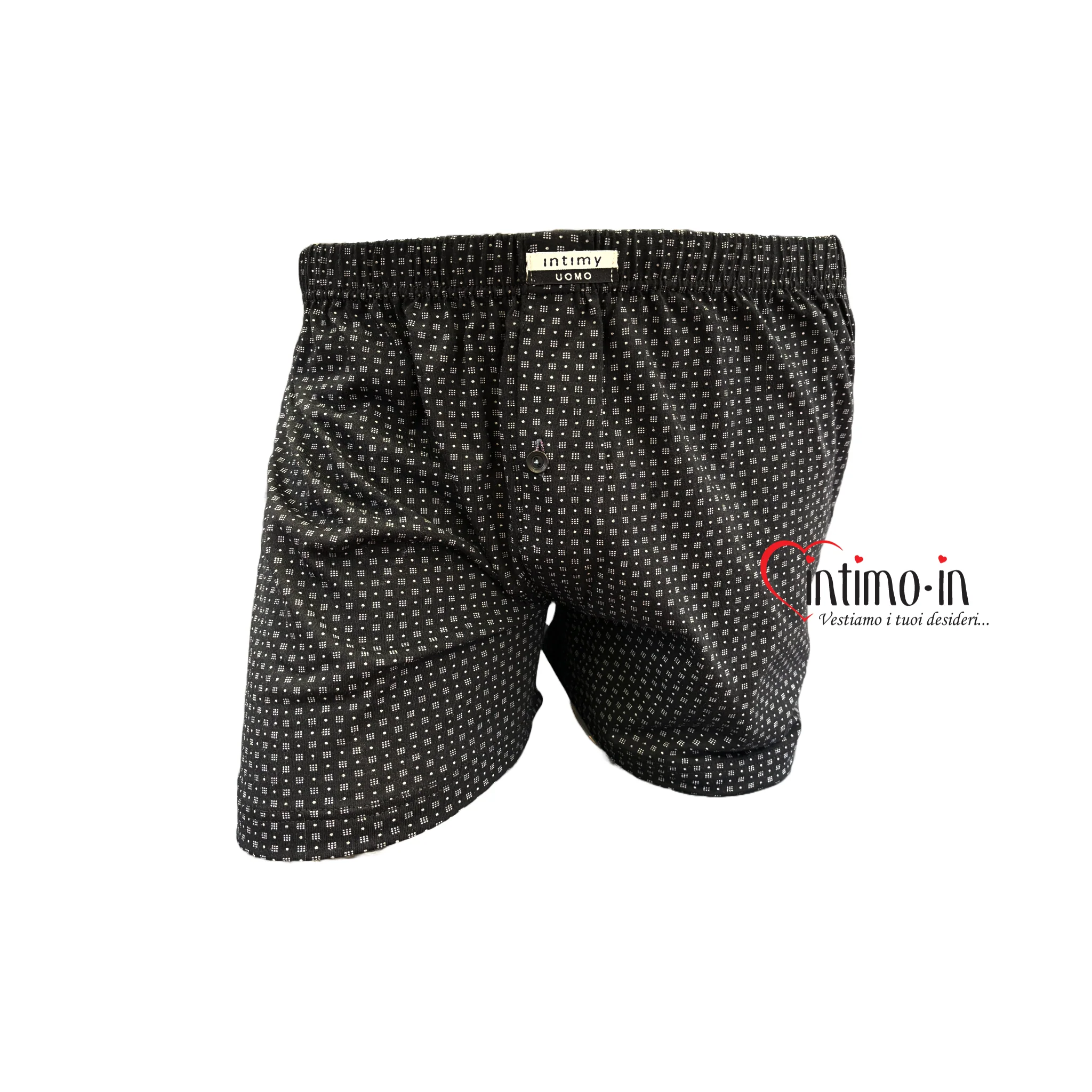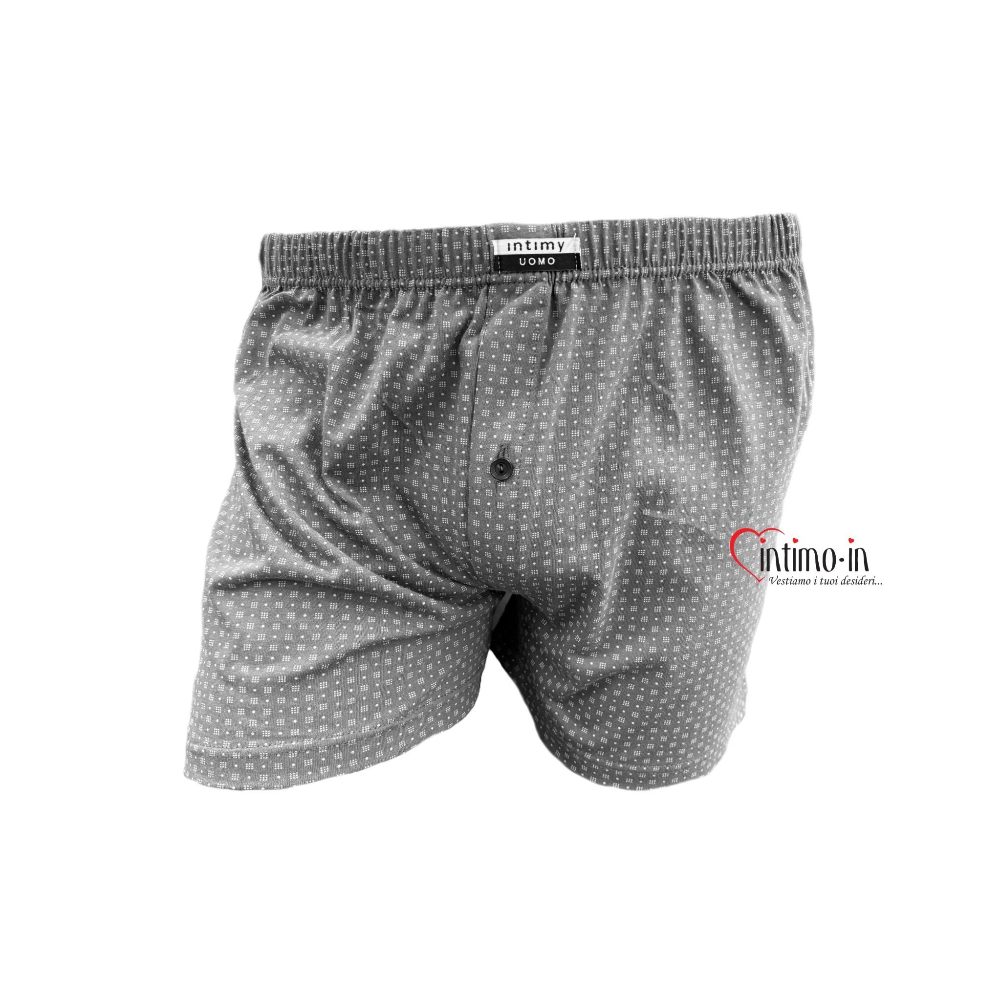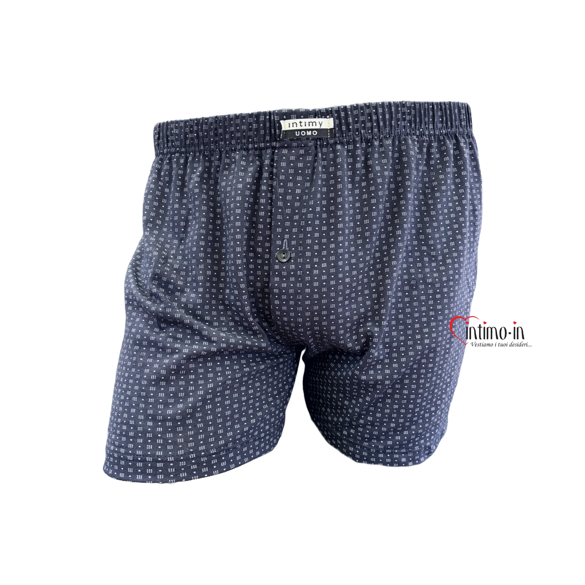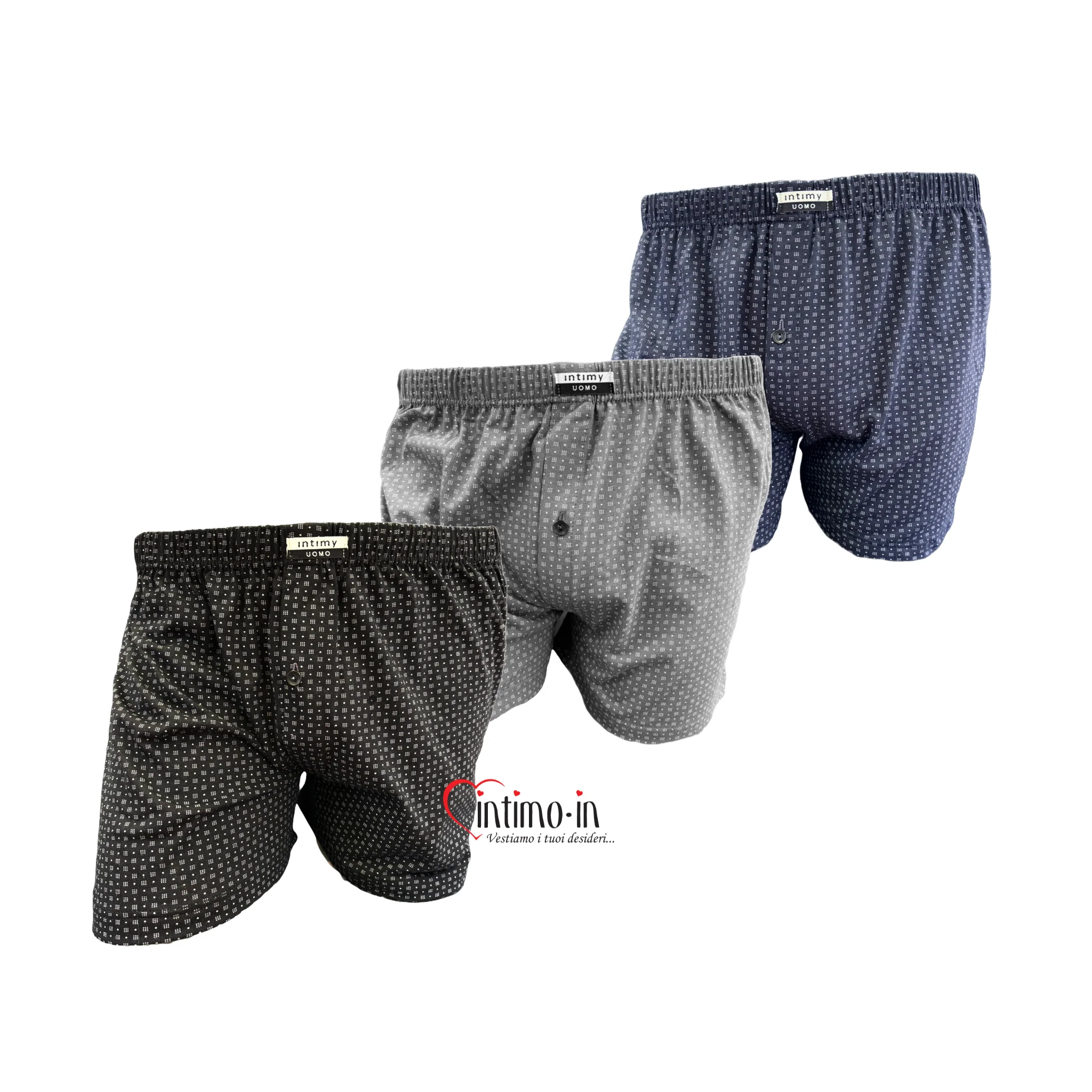 Boxer da uomo con bottone Tri-Pack Brand: Intimy Tessuto: Cotone Composizione: 100% Cotone 757 Confezione composta da 3 boxer da uomo in 100% cotone con apertura sulla parte anteriore, assortiti nei colori: blu, nero, grigio