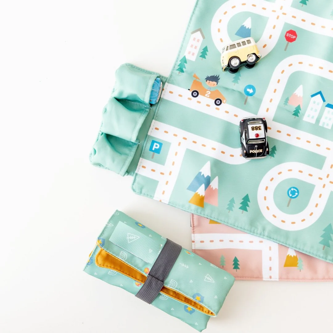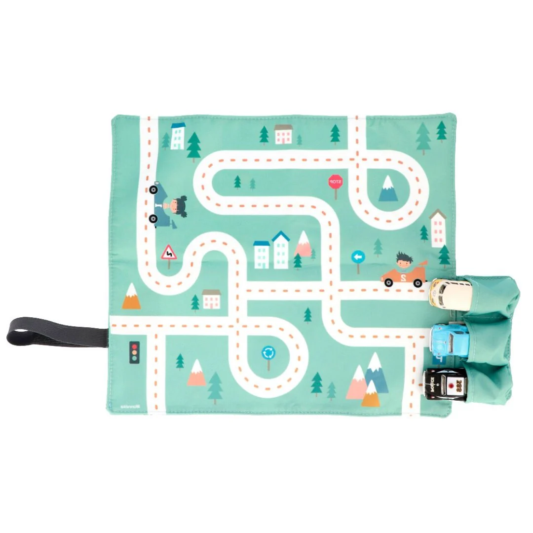 Un circuito delle macchinine da portare dove vuoi! E’ perfetta far giocare il bambino e al tempo stesso proteggere il tavolo o la tovaglia durante la colazione o quando si mangia fuori casa. E’ decorata con una pista e dotata di ben tre macchinine in metallo con frizione (scelta casuale delle macchinine) . Sembra proprio una vera città ed è anche l’occasione per iniziare a spiegare ai bambini i principali segnali stradali che poi potrà riconoscere quando andrete a passeggio.