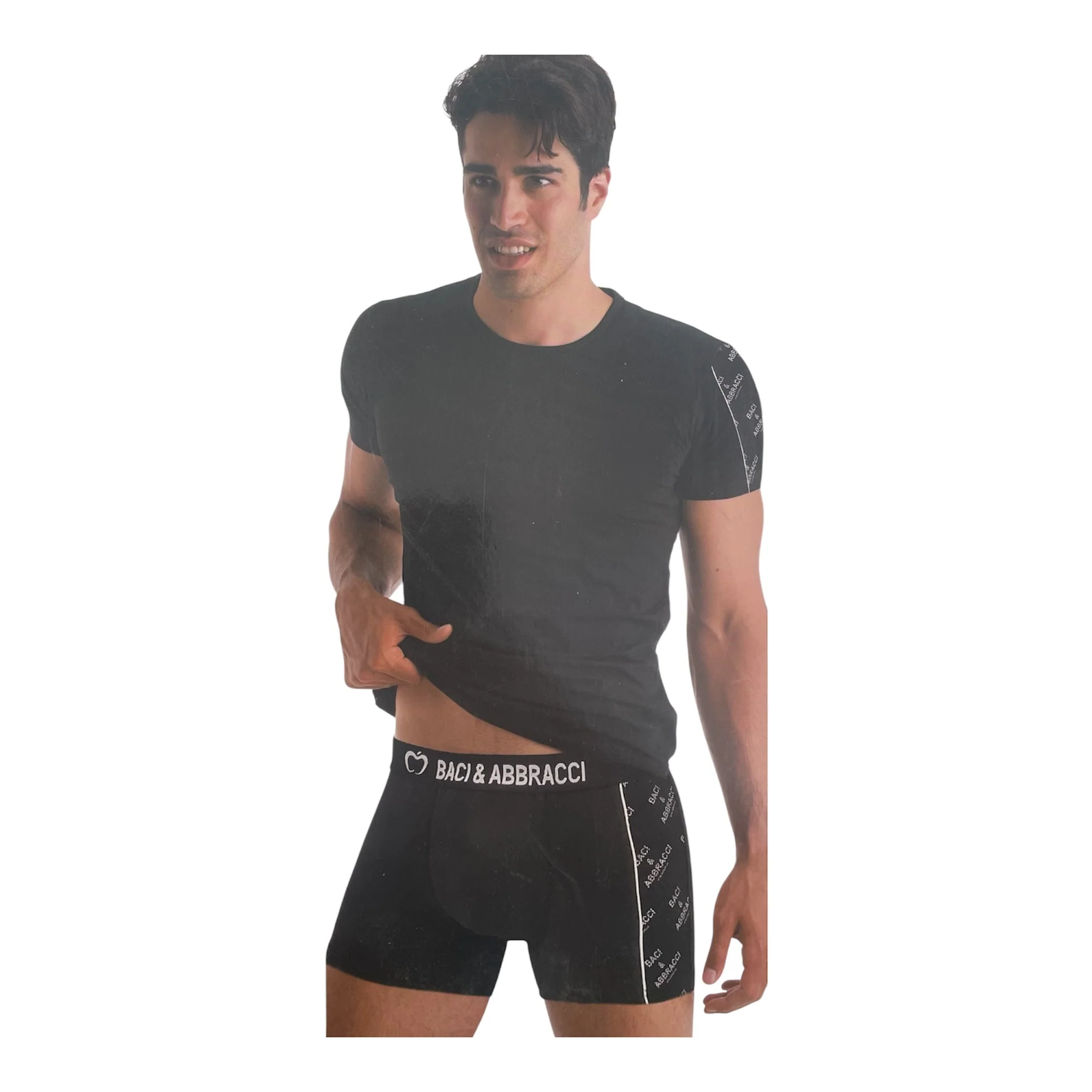 Completo Uomo T-Shirt e Boxer in Cotone Baci & Abbracci Art.BAU314