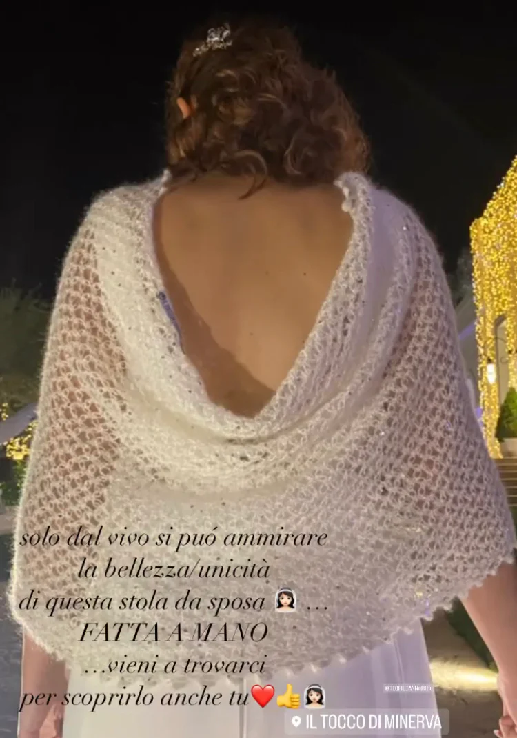 Coprispalle da sposa , fatto a mano con filato in mohair cashmere e seta. Il capo è fatto a mano e su misura. Particolare la lavorazione a microrete , fatta a mano. Ideale su abito da sposa e non solo.