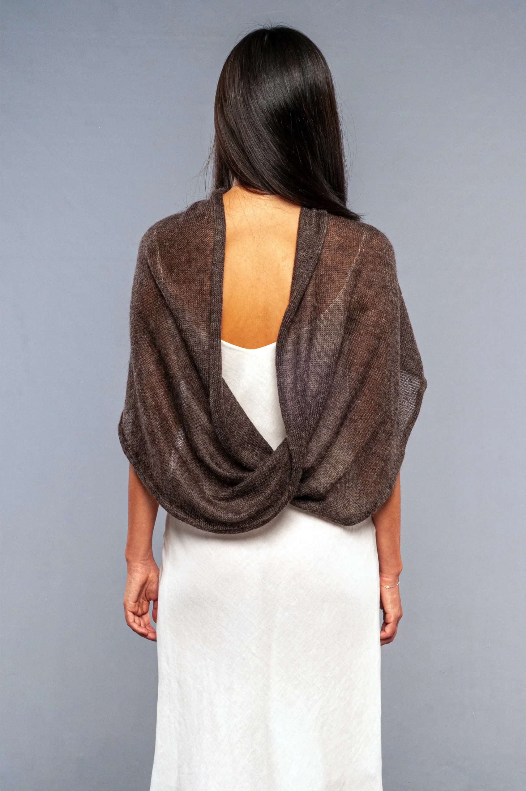 Realizzato a mano e su misura per te, in pregiato mohair e seta, questo coprispalle รจ leggero, trasparente ed estremamente caldo. Grazie alla sue trasparenza e semplicitร , non passerร inosservato ed รจ l’accessorio perfetto per completare gli abiti da sposa. Abbracciati con il suo calore nel tuo giorno speciale.
