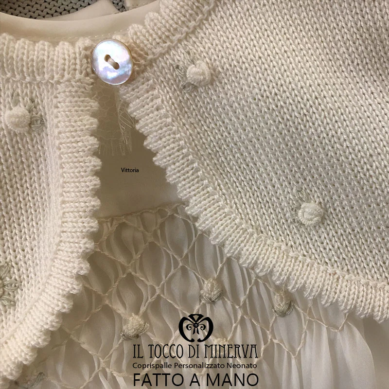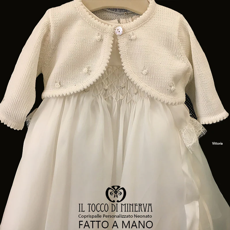 Coprispalle da neonato , fatto a mano e su misura. Il coprispalle รจ realizzato con un filato 100% cotone e personalizzato al vestito ( come in foto).