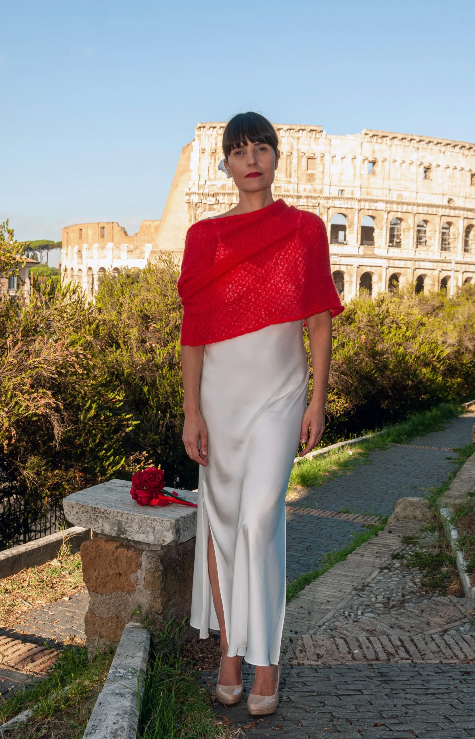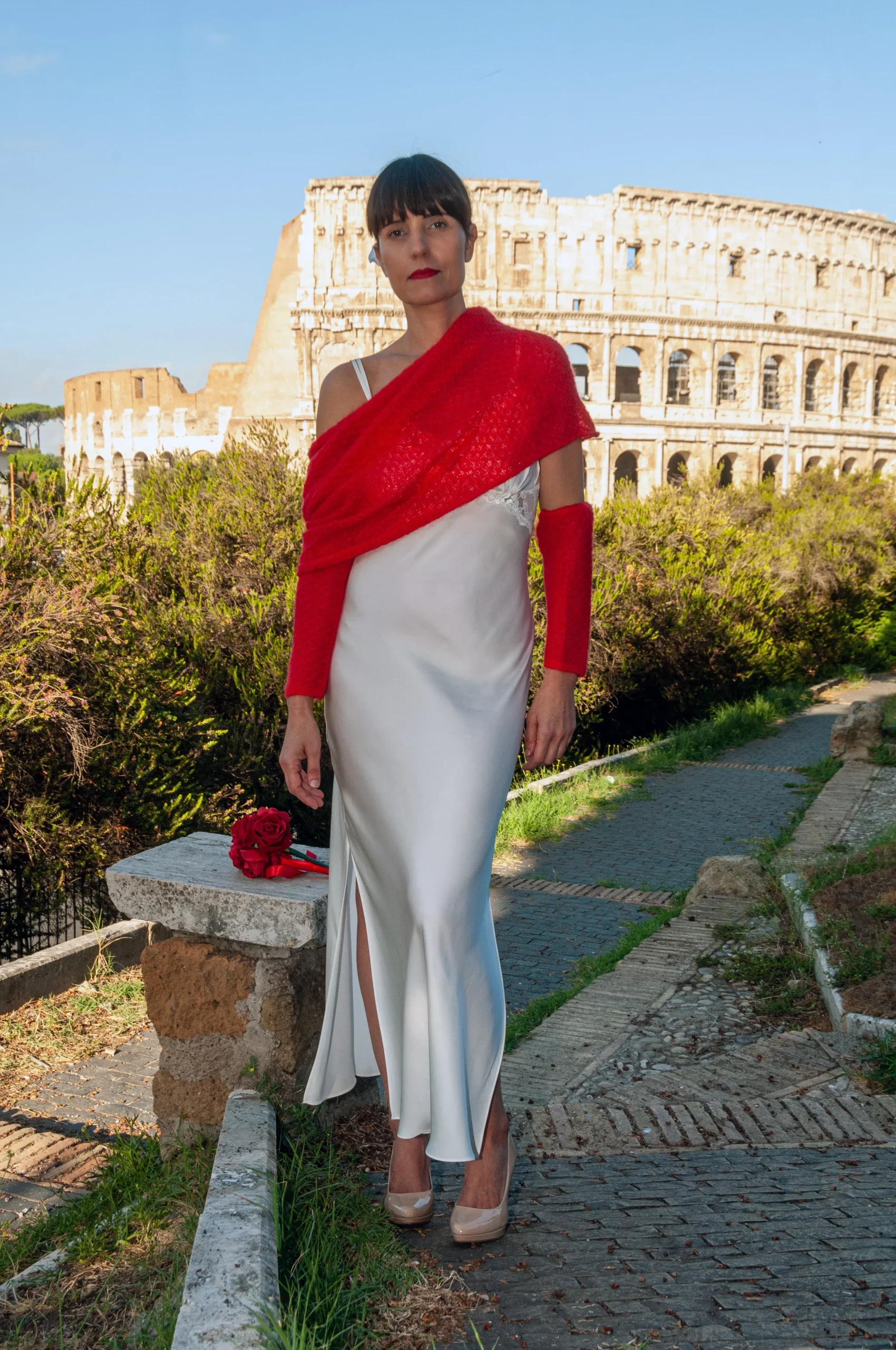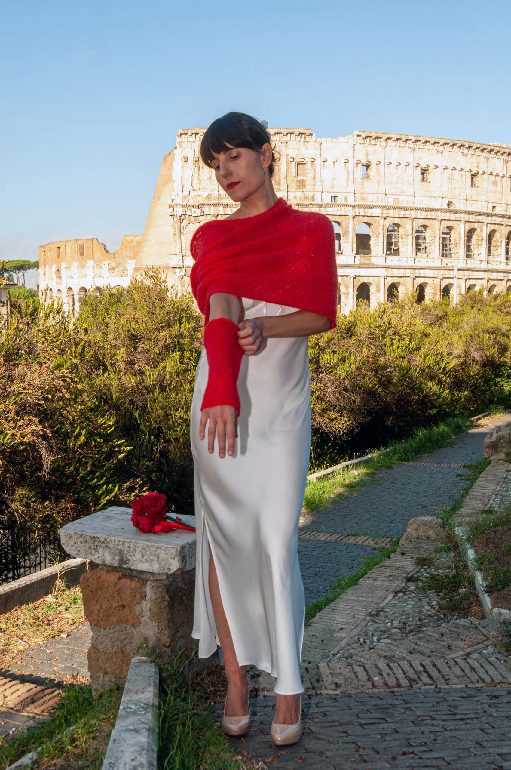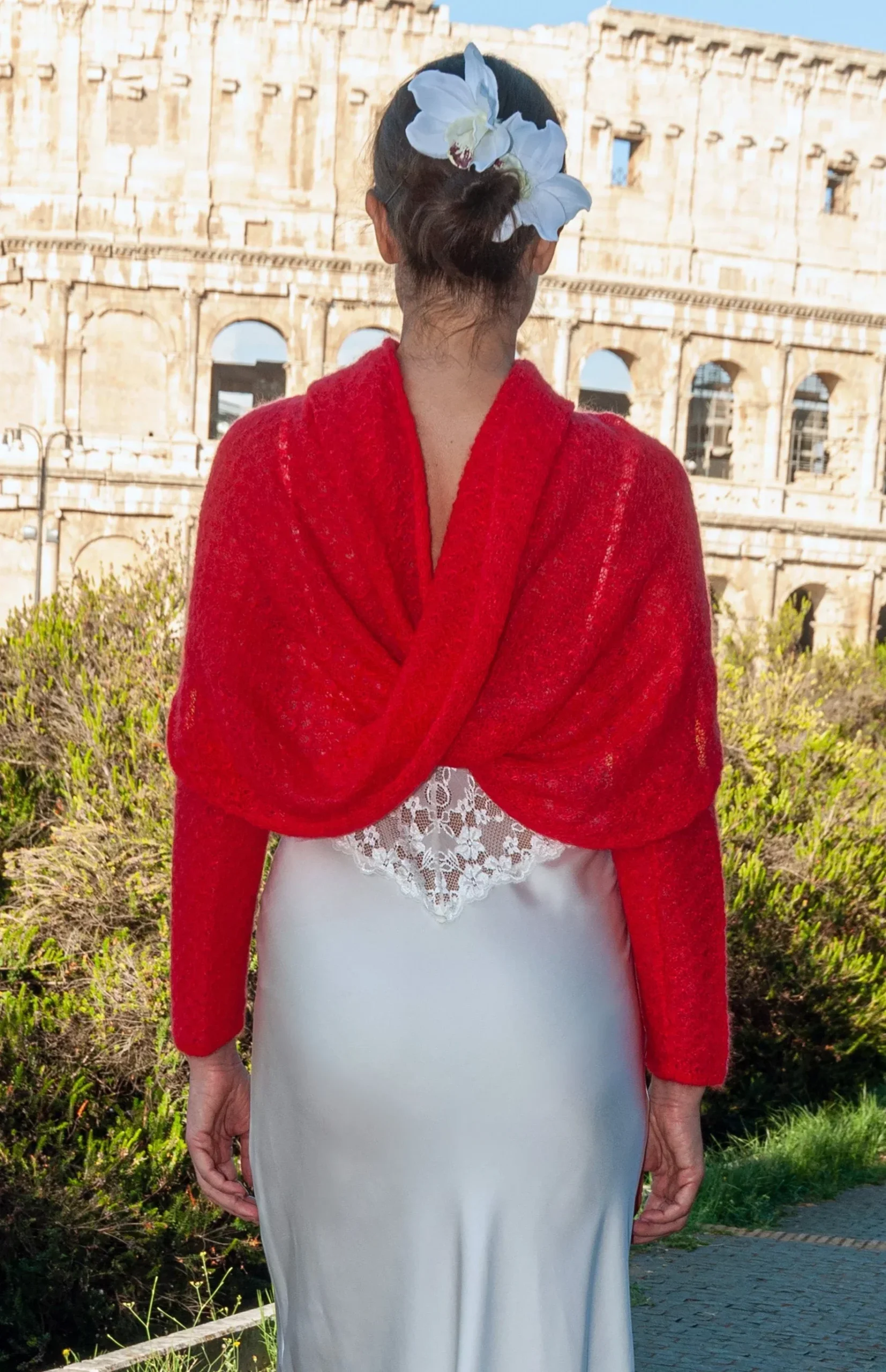 Coprispalle Sposa Mohair con manicotti Rosso