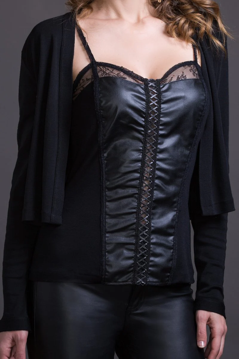 Corsetto da donna 697 in lana seta e eco-pelle – Spalla stretta e elegante design