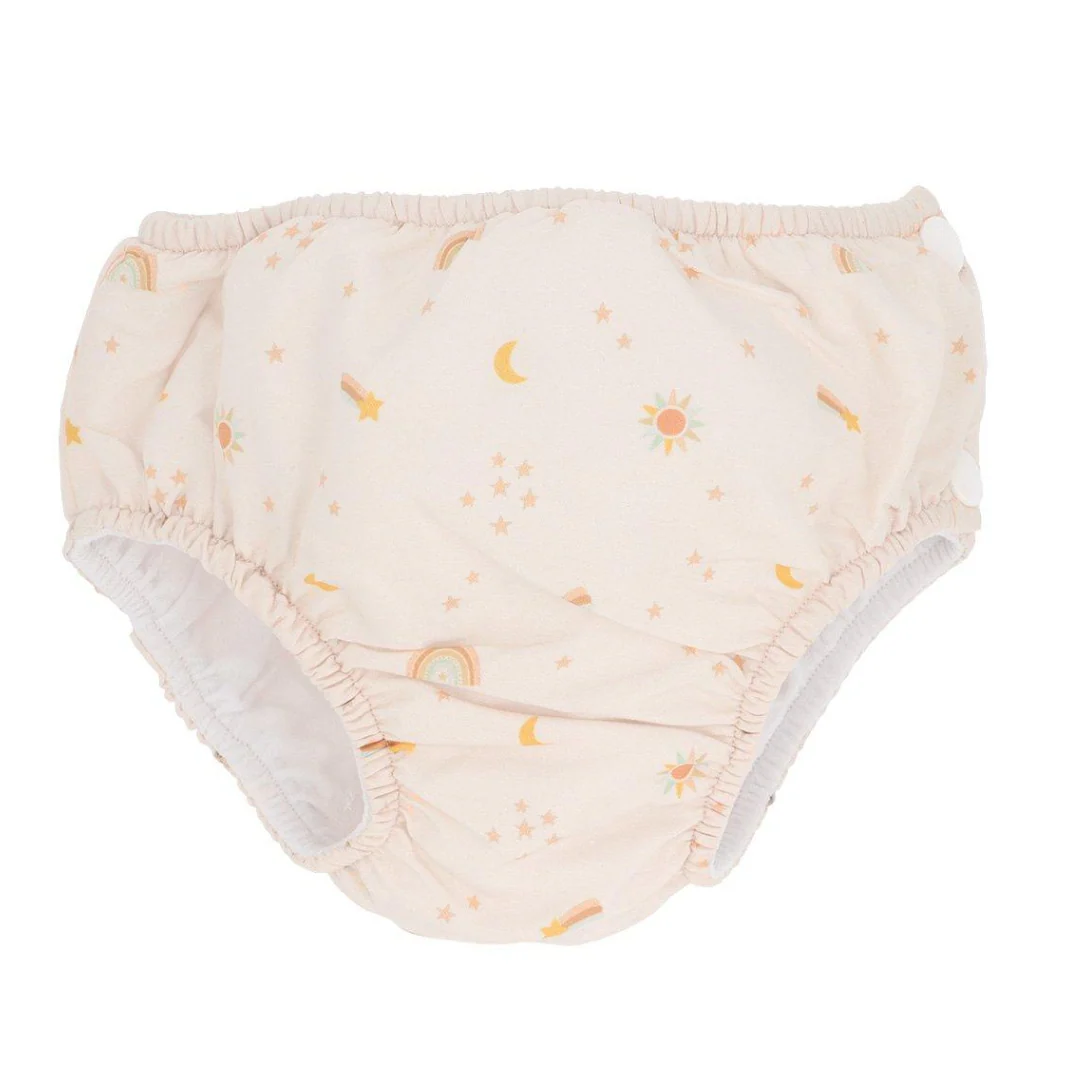 Questo costume contenitivo neonato assicura una protezione ottimale dalle fuoriuscite grazie ai due strati di tessuto: è la soluzione ideale e fresca da utilizzare al posto degli ingombranti e caldi pannolini in plastica usa e getta, che a contatto con l’acqua si gonfiano ed appesantiscono.