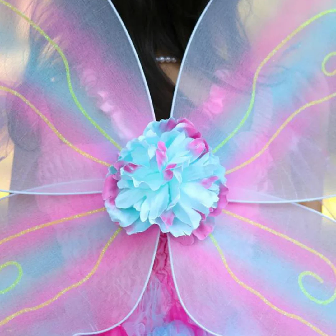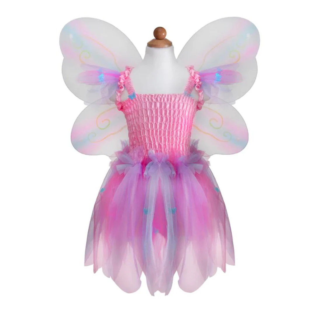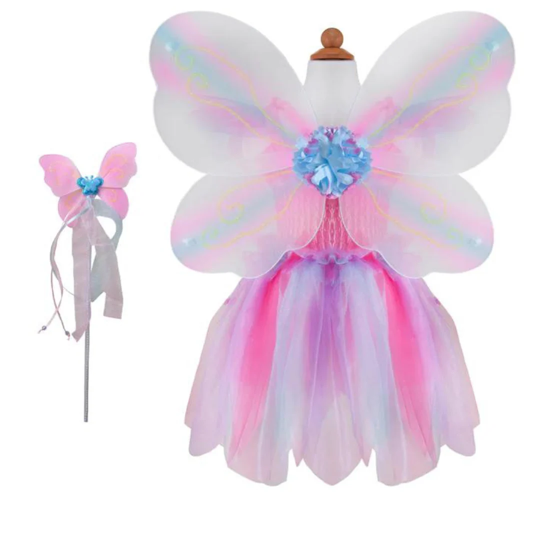 Costume Farfalla Arcobaleno – Set 3 Pezzi (Abito, Ali, Bacchetta)