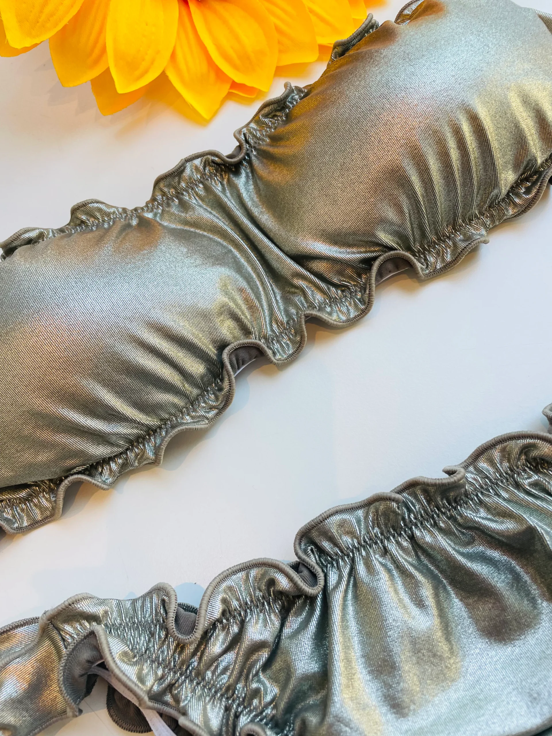 Costume due pezzi HAIDEAH. reggiseno a fascia senza ferretto con spalline incluse, coppetta preformata estraibile. Fascia molto elastica, chiusura con laccetti regolabile a proprio piacimento. Slip bikini a vita bassa molto elastico. Tre colorazioni disponibili, multicolore, lilla oppure dorato. Fascia ideale per coppe B e C. Taglie dalla 40 alla 48. TUTTI I NOSTRI COSTUMI […]