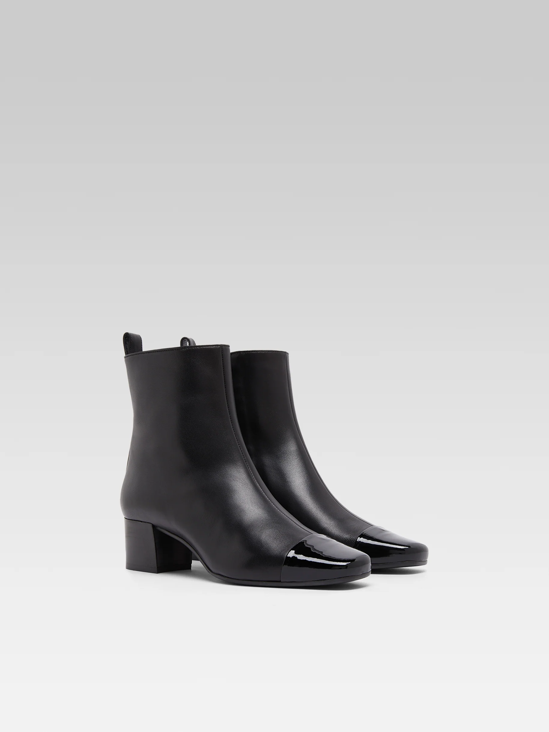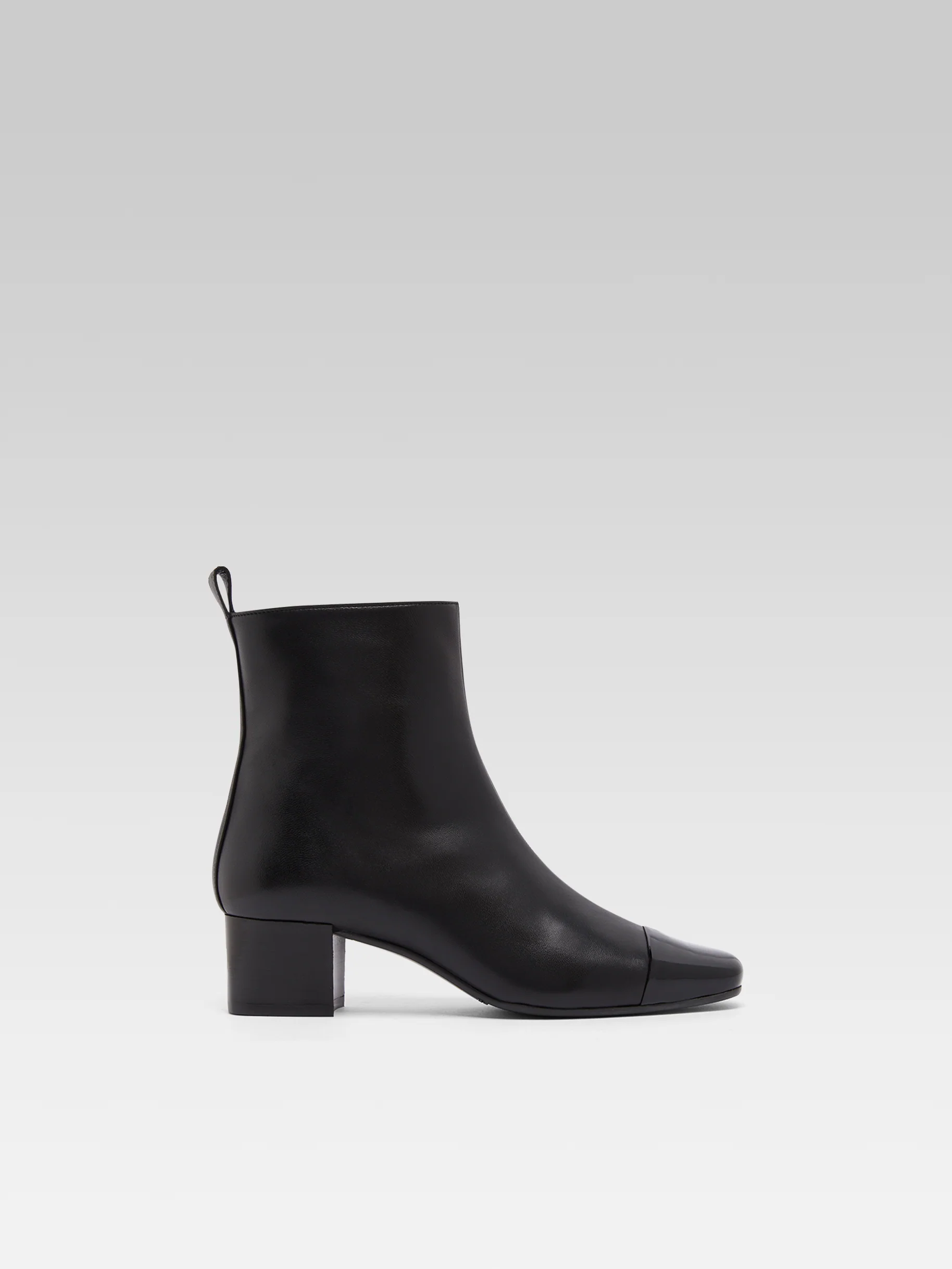 This sixties-inspired ankle boot embodies the signature of the Carel house with its contrasting straight toe. Distinguished by its trotter heel which provides comfort and stability, an ankle boot with clean lines that adapts to all looks.