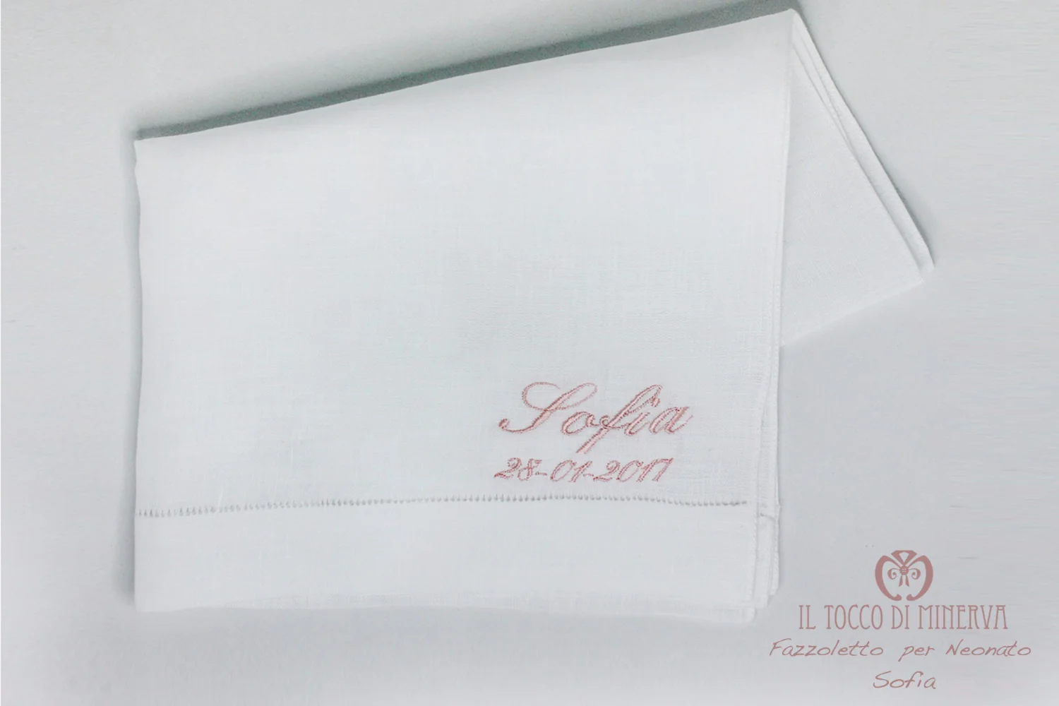 Recensisci per primo “Fazzoletto neonato/a lino personalizzabile Sofia Realizzato a mano – Handmade”