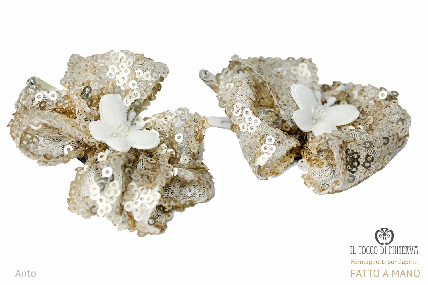 Fermaglietti per capelli platino e panna Anto Realizzati a mano – Handmade