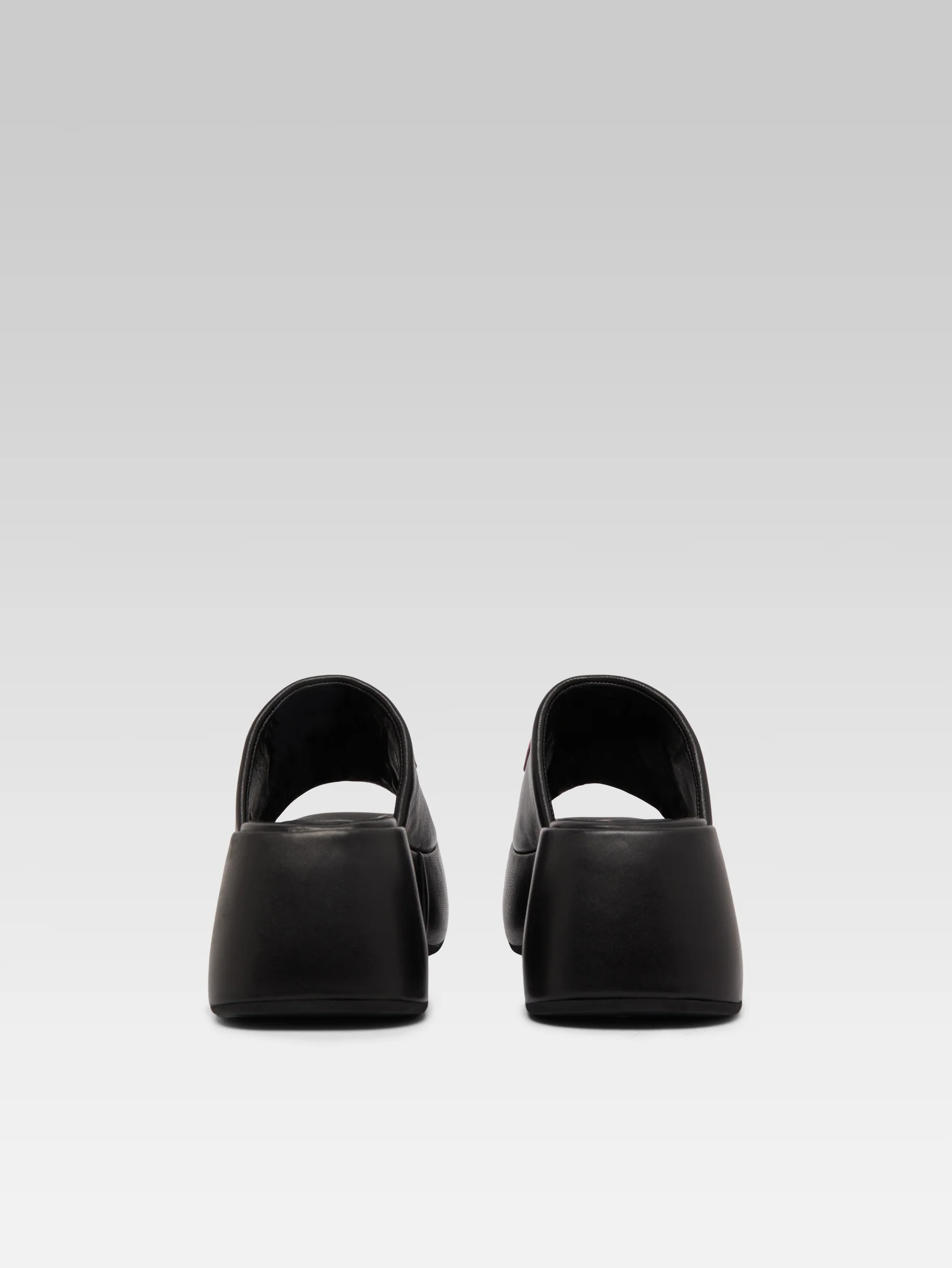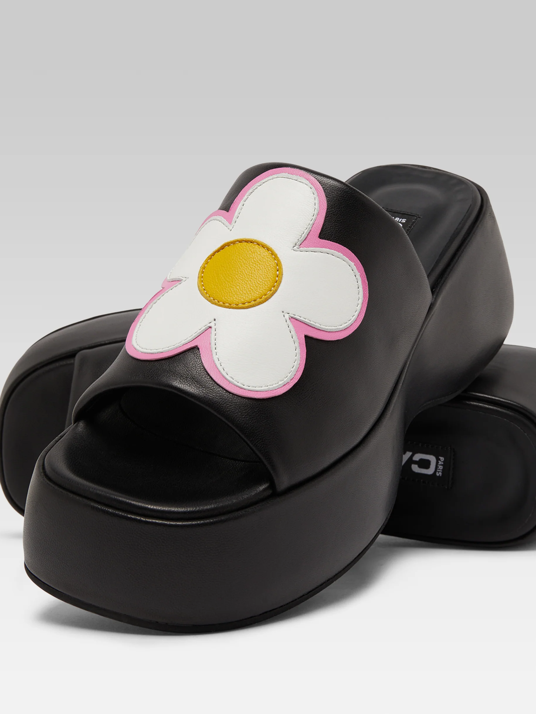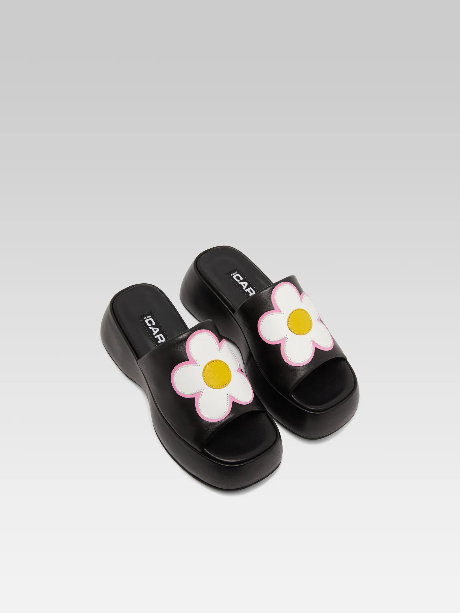 Flower – Black leather platform mules