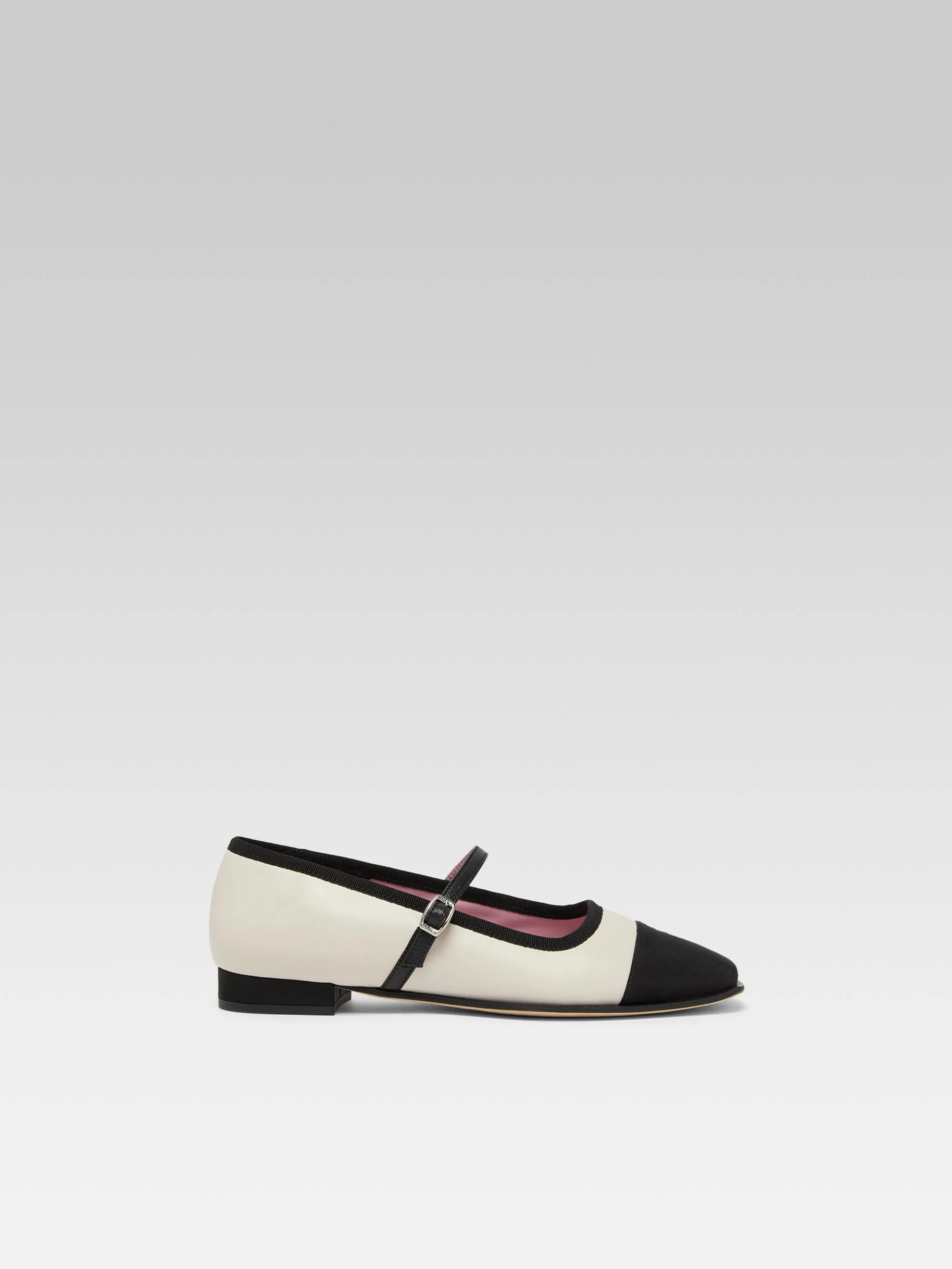 Gisele – Beige leather and black grosgrain Mary Janes ballet flats