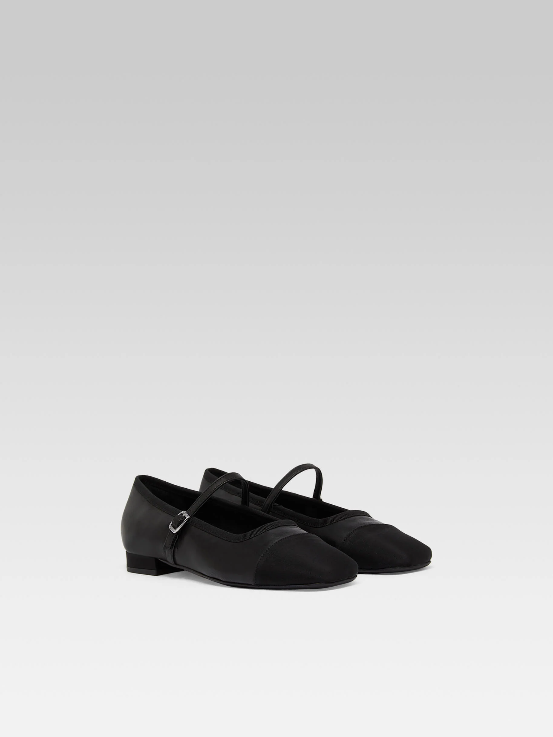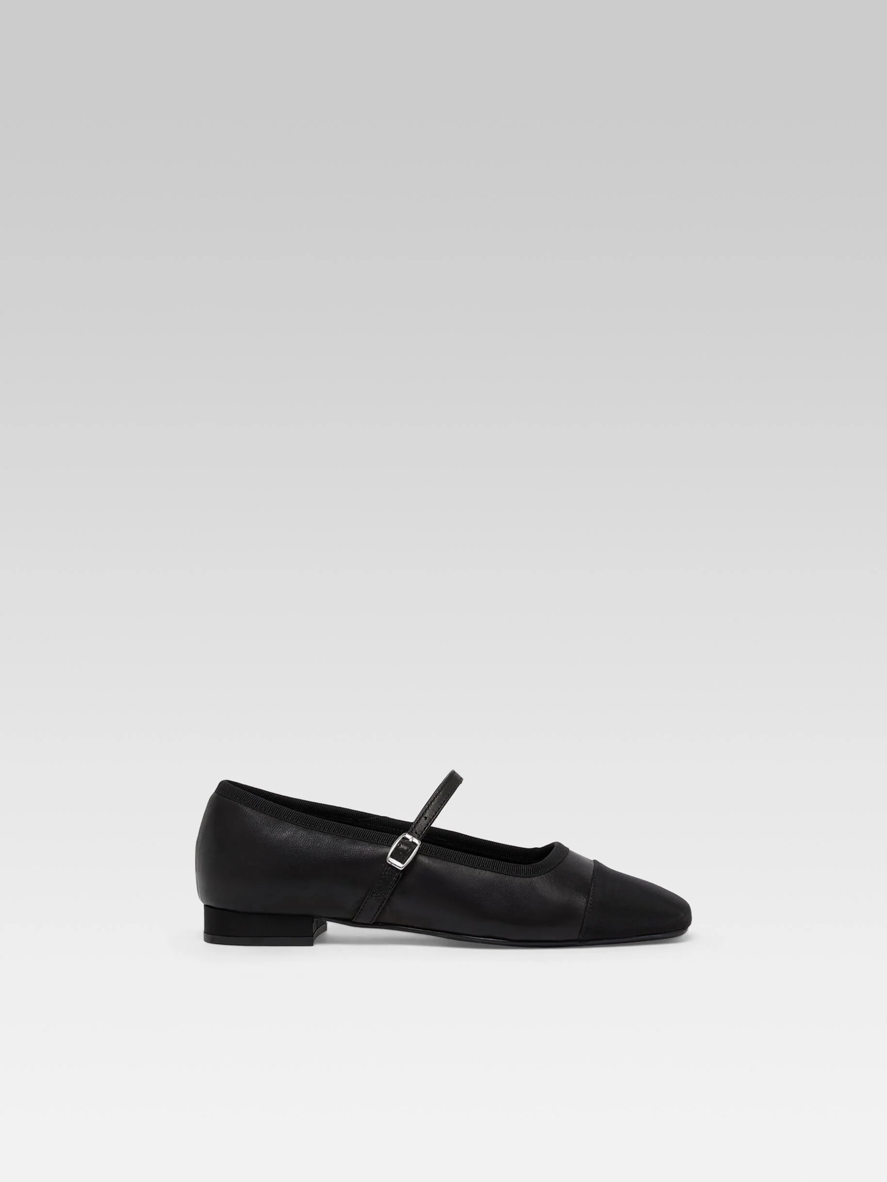 Gisele – Black leather and grosgrain Mary Janes ballet flats