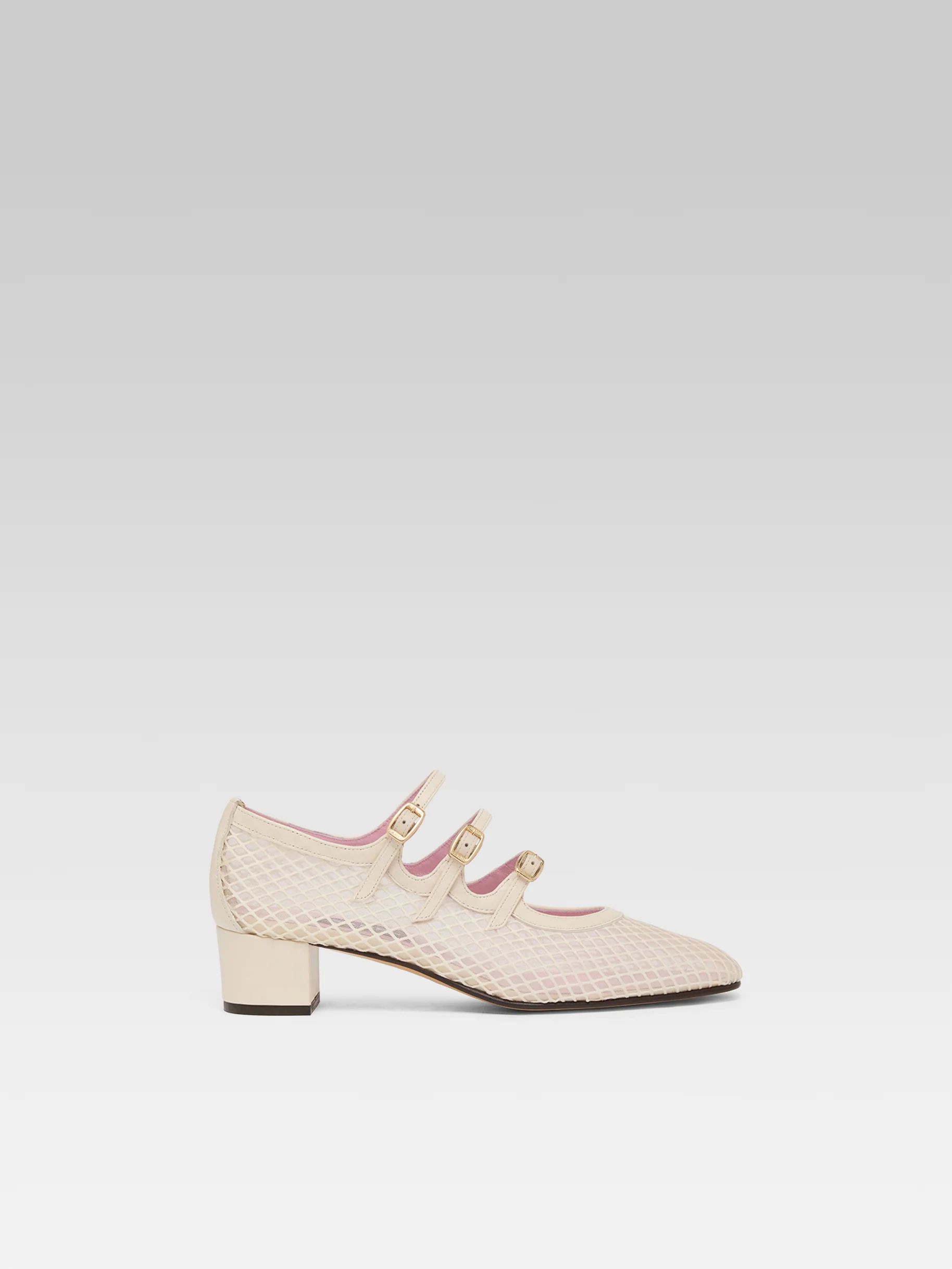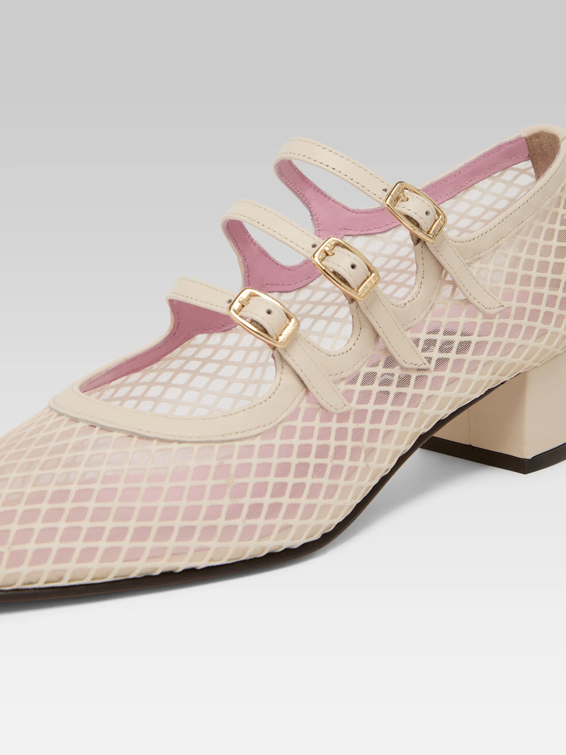 Kina is our signature shoe, inspired by the early archives of the Carel fashion house. With its timeless, vintage design, this Mary Jane embodies Parisian elegance and perfect comfort thanks to its 4 cm block heel and exceptionally supple leather. Its three adjustable straps flatter the arch and adapt perfectly to every foot shape. Loved and adopted by Angèle, Alexa Chung, and Emily Ratajkowski.