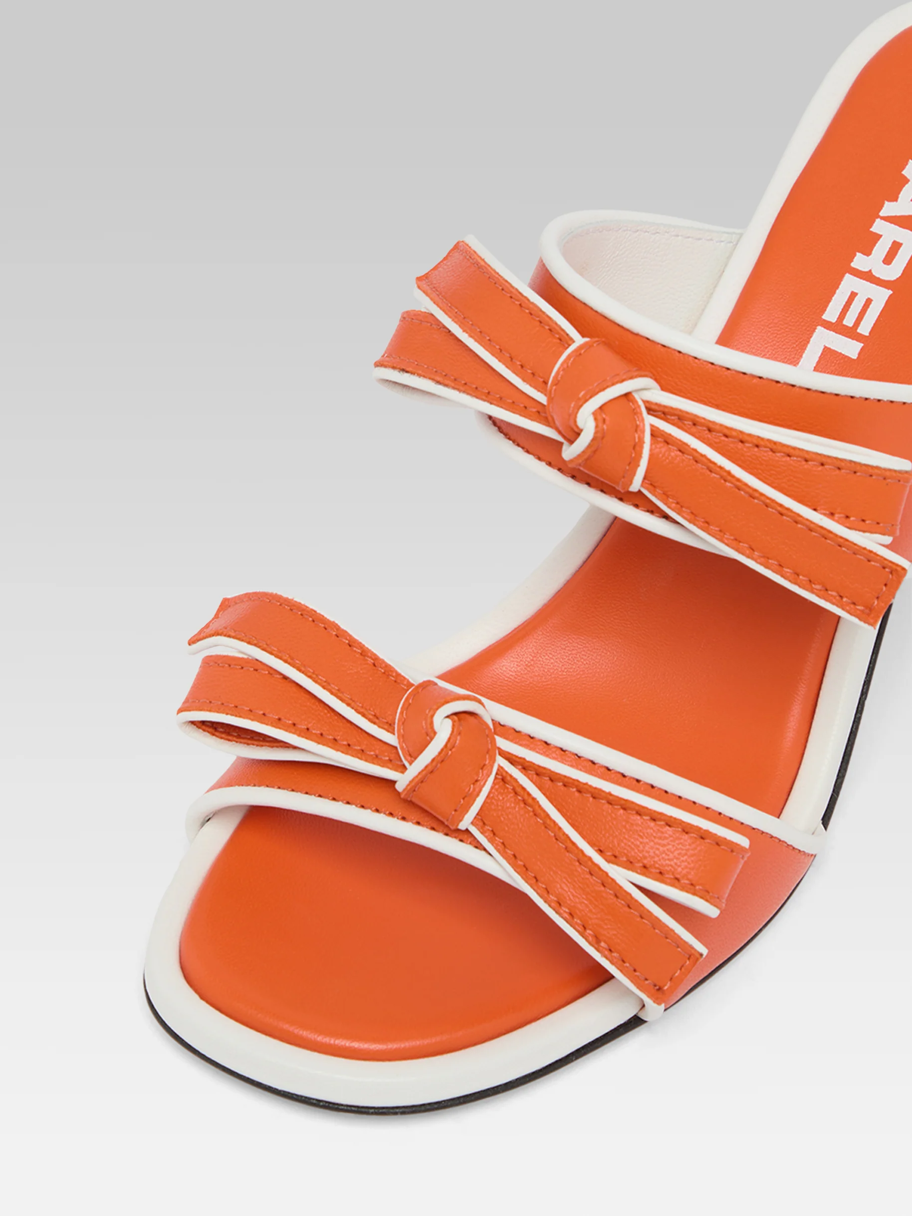Laranja celebrates the retro-chic spirit that has always inspired the brand. Its graphic two-tone bow and sculptural heel embody the playful creativity that is unique to Carel, while remaining faithful to Italian craftsmanship.