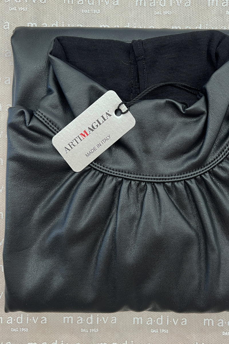 Lupetto da donna 836 04 in lana seta ed eco-pelle – Manica lunga ed elegante design