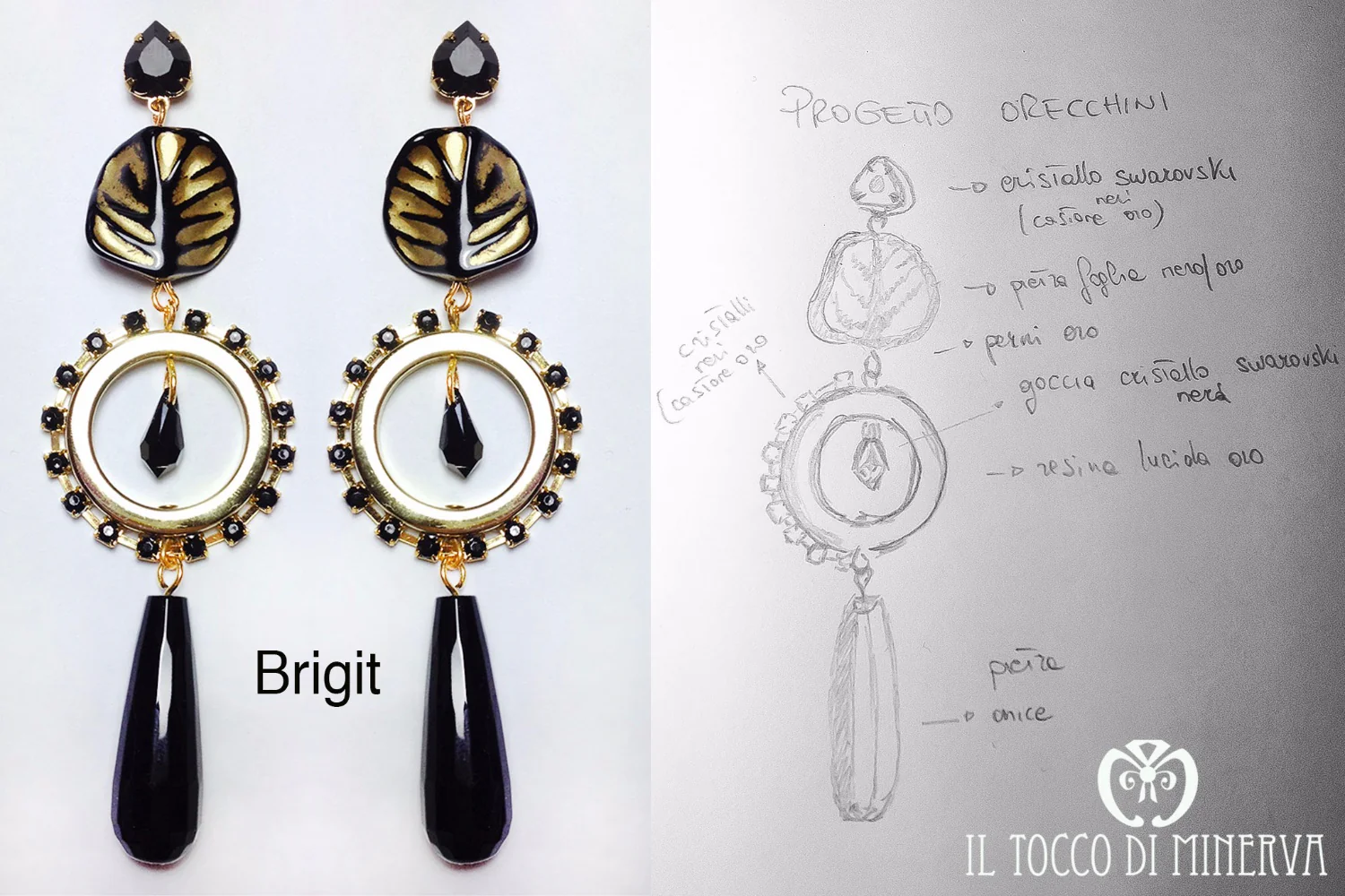 Orecchini onice nera,swarovski e resina Brigit Realizzati a mano – Handmade