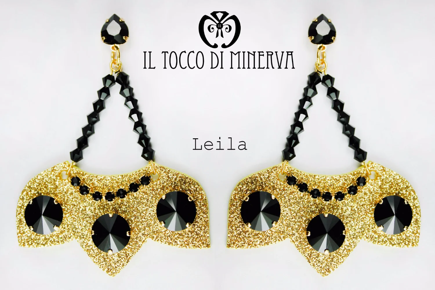 Orecchini oro/nero Lurex e Swarovski Leila Realizzati a mano – Handmade
