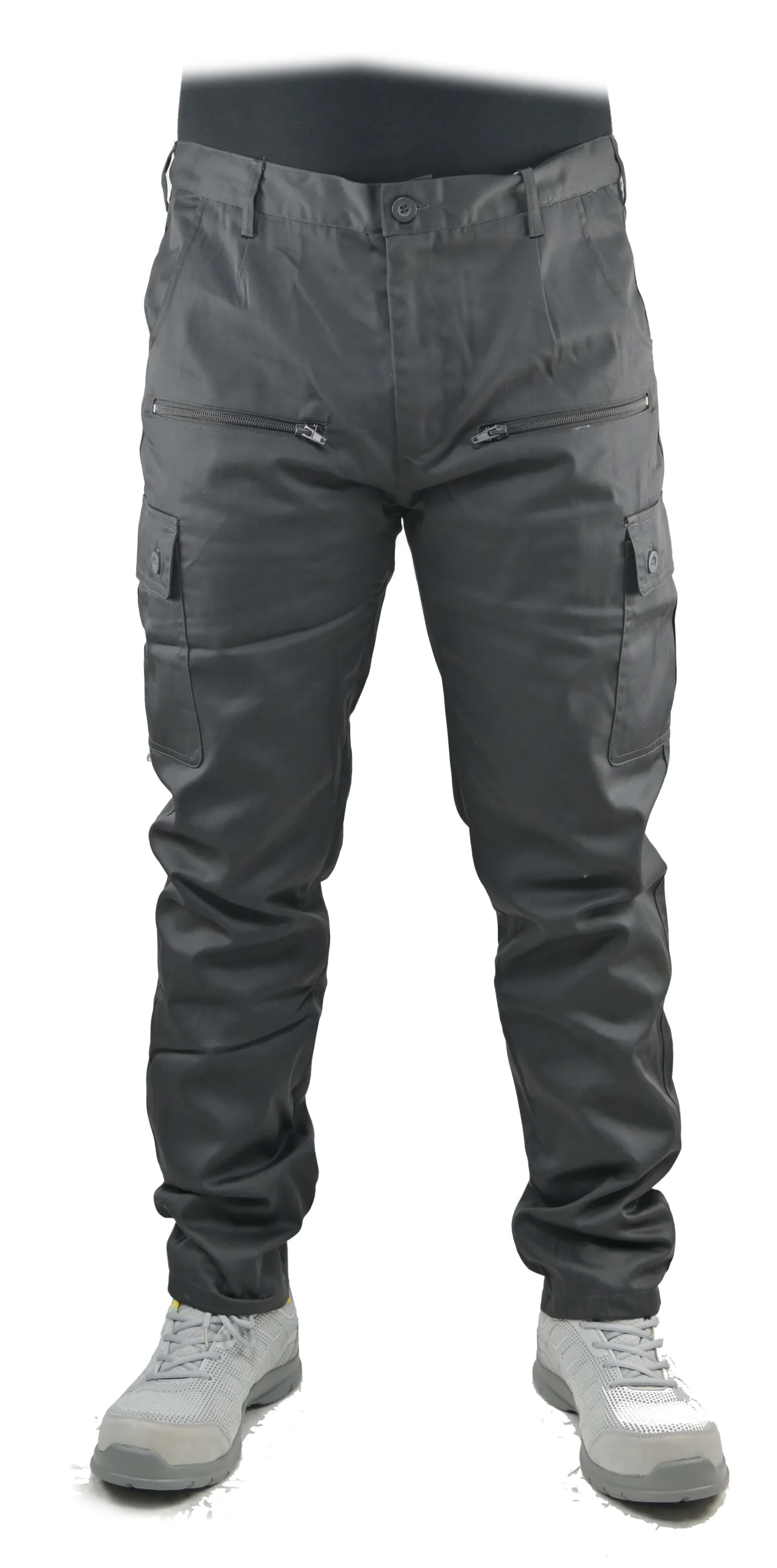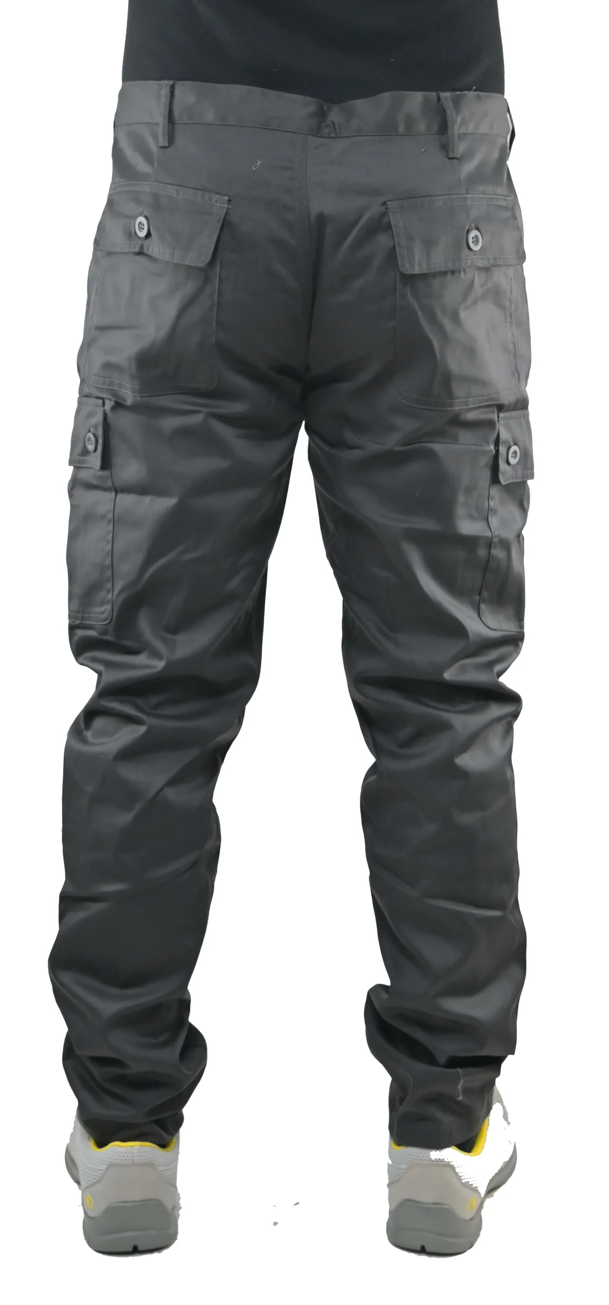 Tasche posteriori e sulla coscia con pattina chiusa da bottoni.