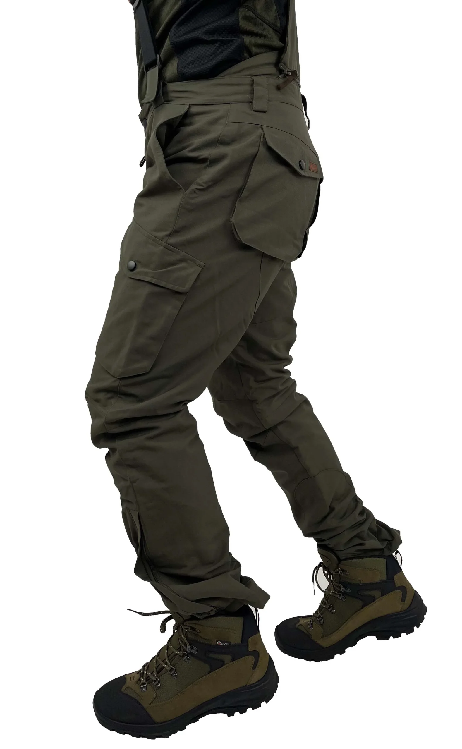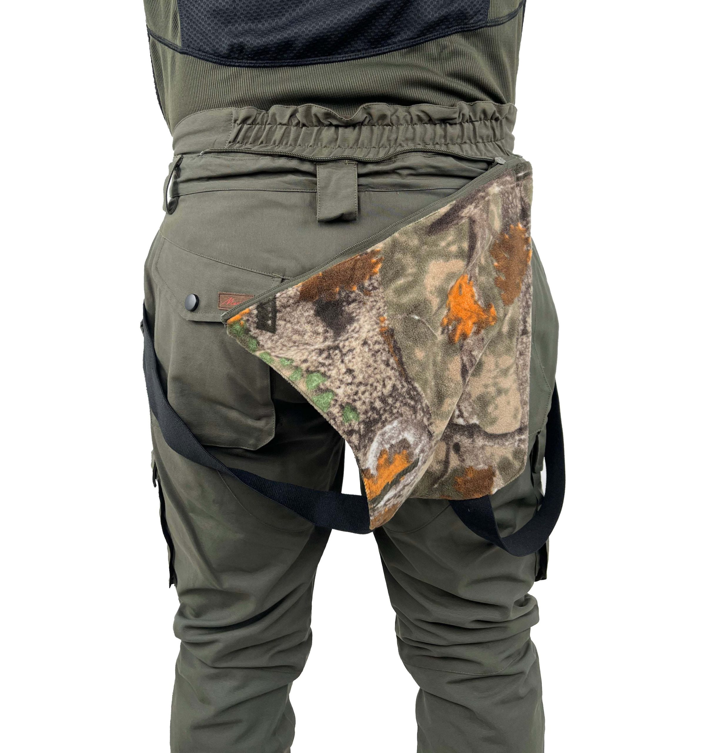 Sul retro, il pantalone, presenta uno scalda reni a bretelle rimovibile.