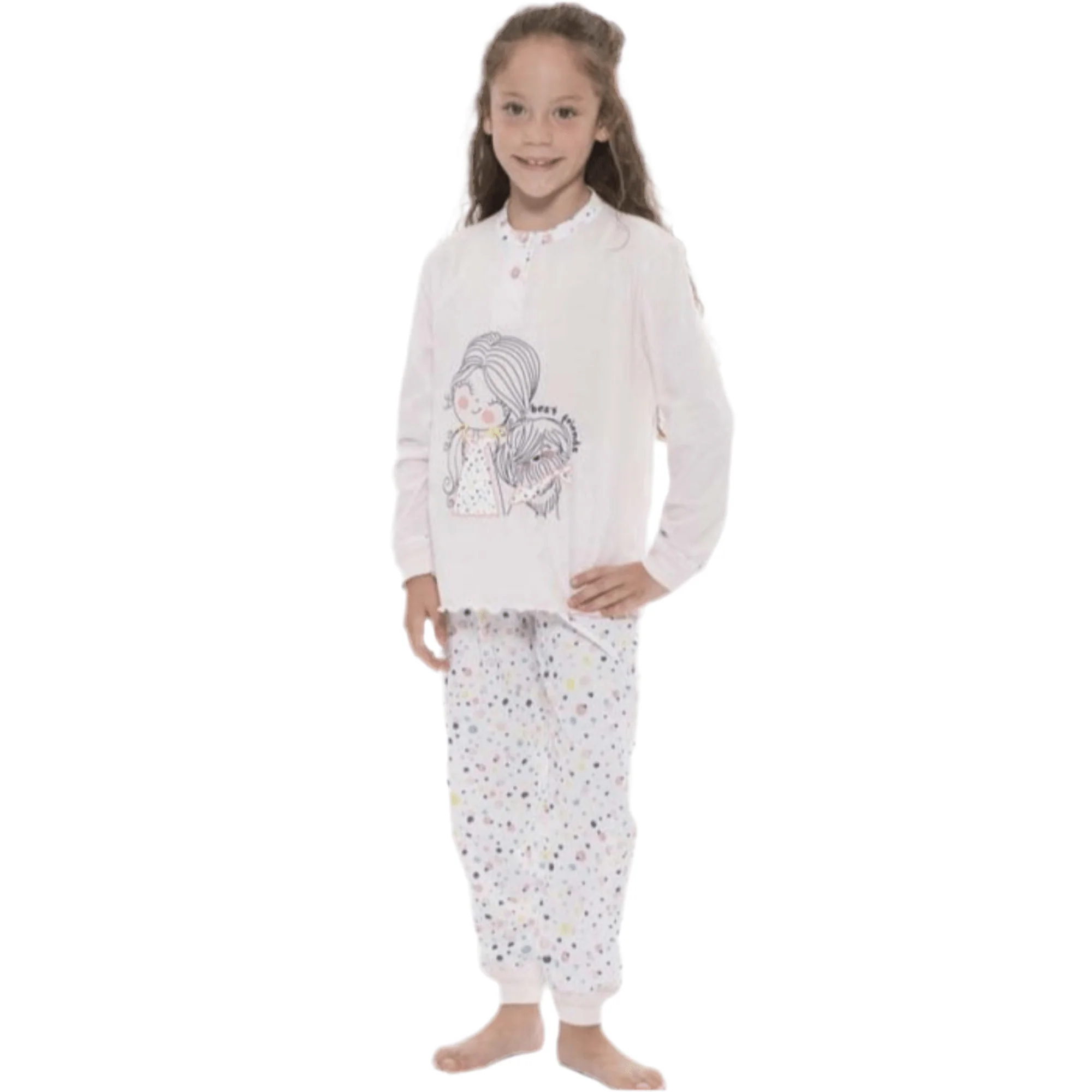 Il pigiama lungo Gary Art. R30004 è realizzato in cotone jersey morbido e traspirante, ideale per garantire alle più piccole un riposo sereno e naturale in ogni stagione più fresca.