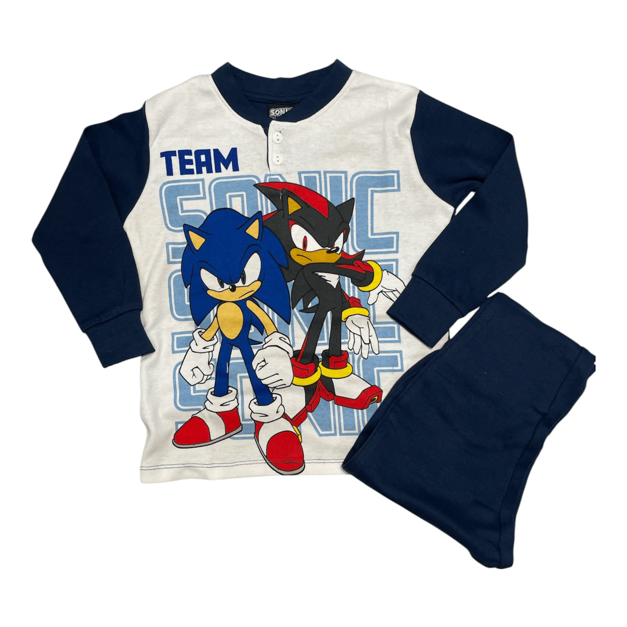 Il modello con maglia girocollo a manica lunga e pantaloni coordinati offre una vestibilità pratica e confortevole, mentre la stampa ispirata a Sonic, il famoso riccio blu dei videogiochi, regala un tocco di energia e simpatia che conquisterà i bambini.