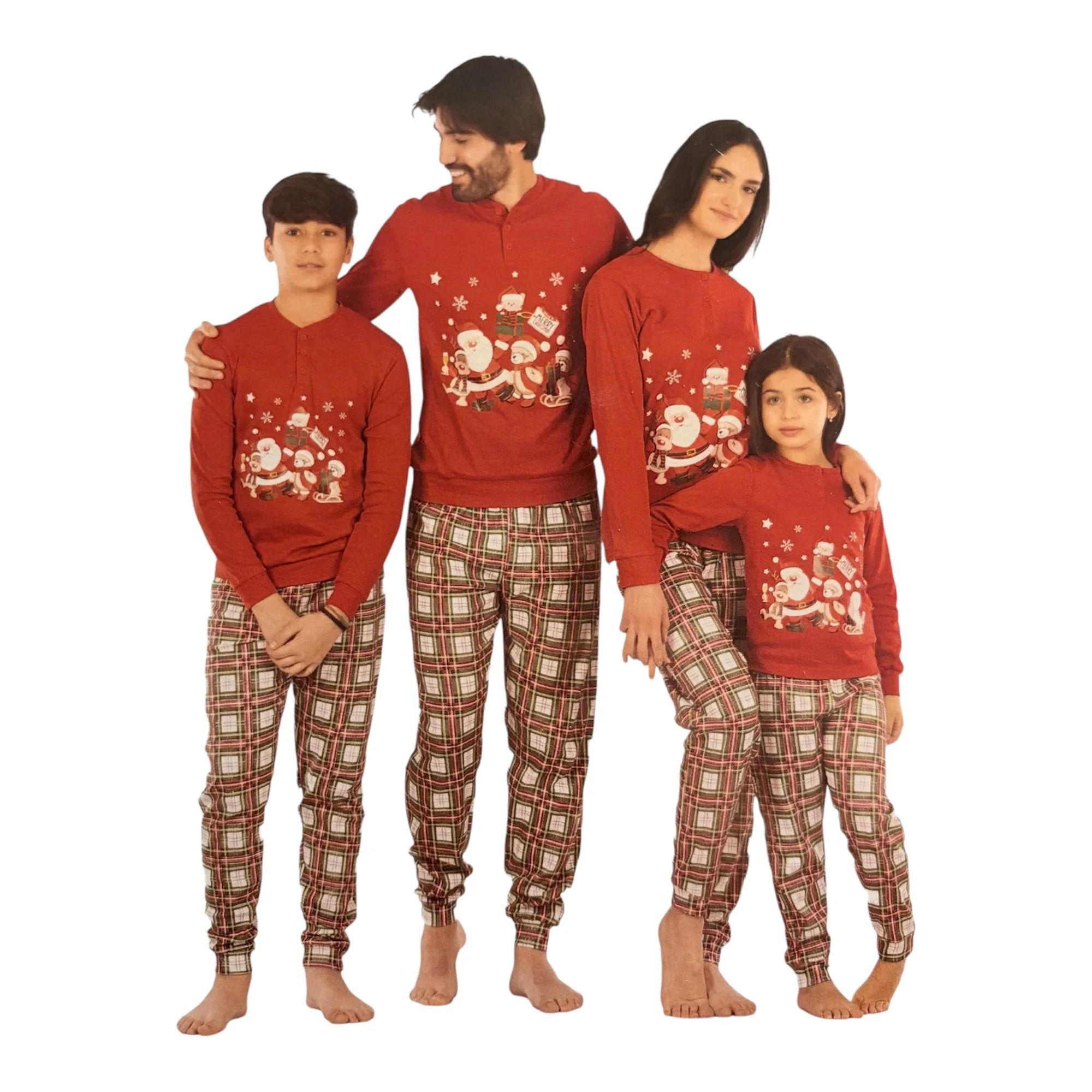 Il modello con scollo serafino e polsini elasticizzati garantisce una vestibilità pratica e confortevole, ideale per il movimento e il riposo. Le fantasie natalizie allegre e colorate aggiungono un pizzico di festa al guardaroba notte dei bambini.