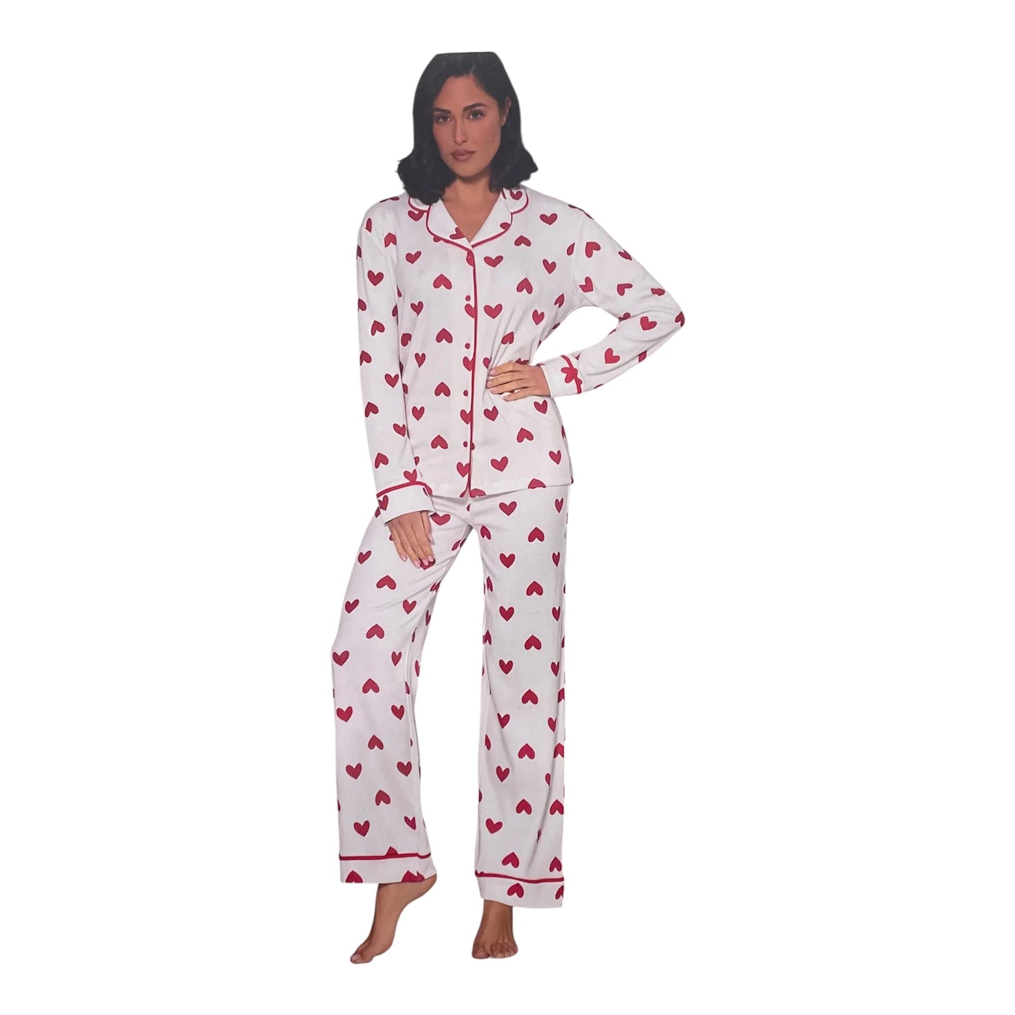 Pigiama Donna Lungo in Caldo Cotone Apertura Davanti Senza Polsino Love and Bra Art.94298