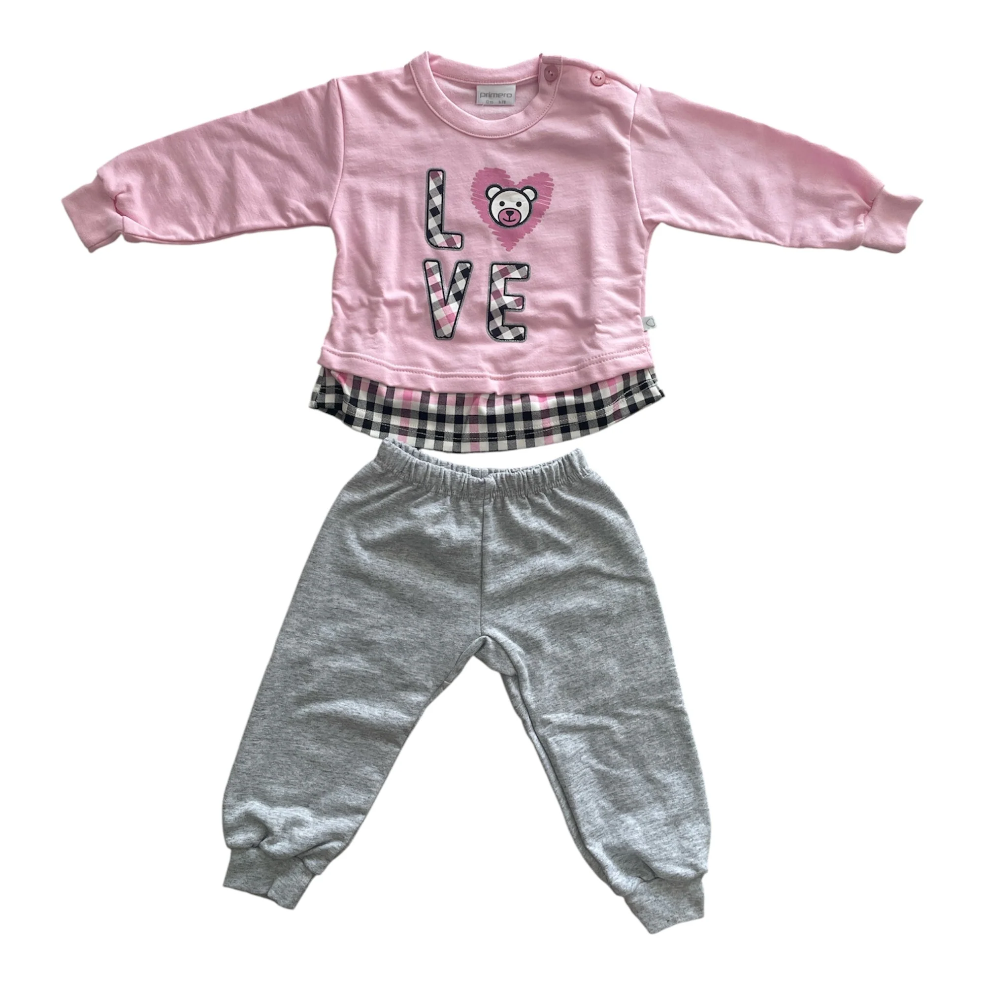 Il Pigiama Neonata Lungo in Cotone Felpato Spalla Aperta Primero Art.I14106 è studiato per offrire il massimo comfort e praticità nei mesi più freddi. Realizzato in morbido cotone felpato, avvolge la piccola in un abbraccio caldo e delicato, ideale per garantire un sonno sereno e protetto.