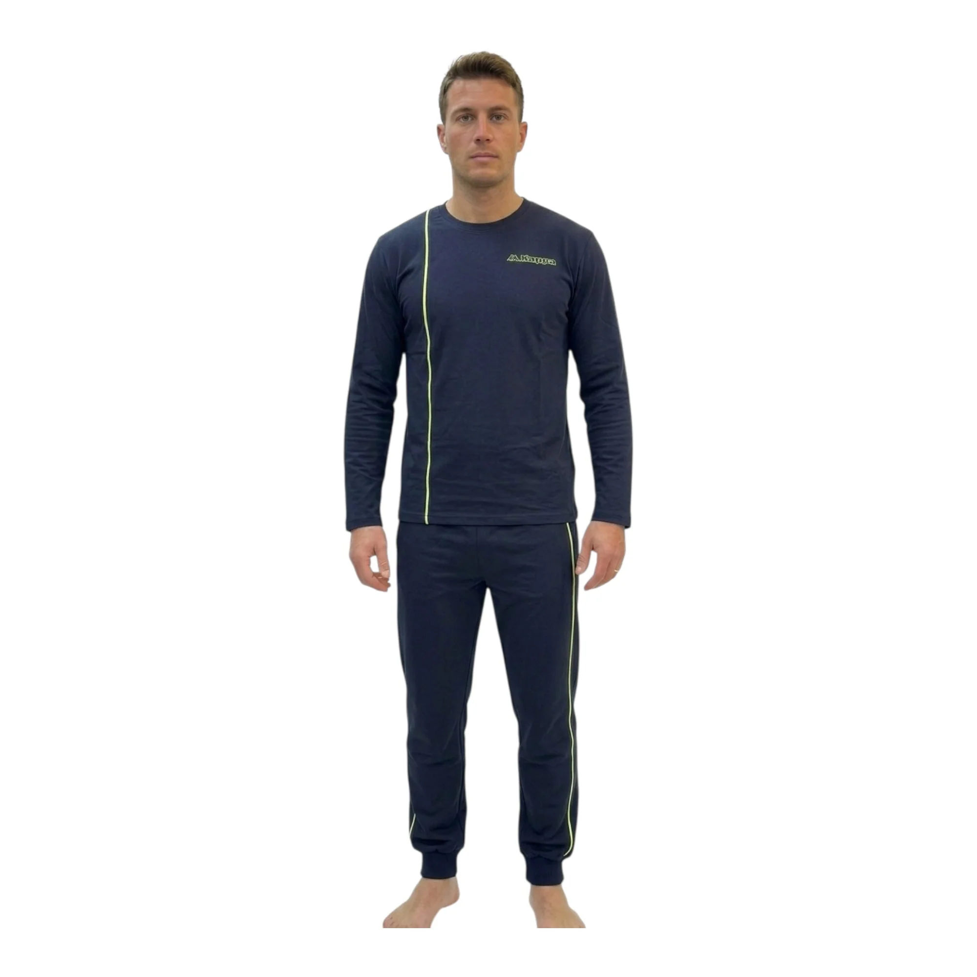 Pigiama Uomo Lungo in Cotone Jersey Serafino con Polsini Kappa Art.KMS26108