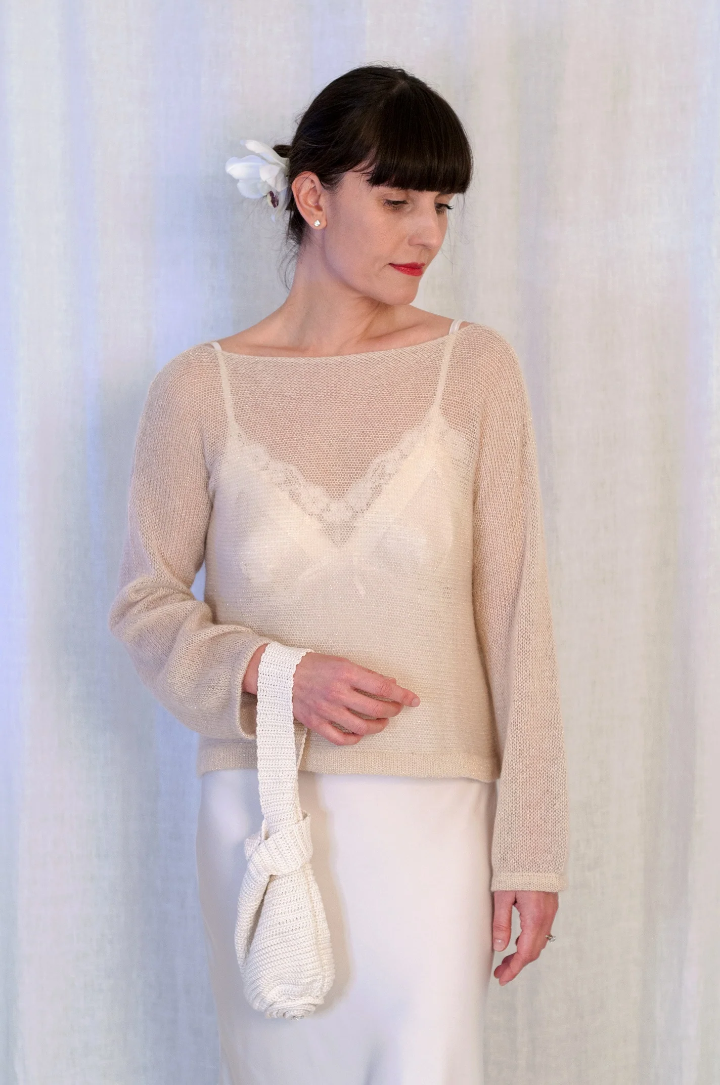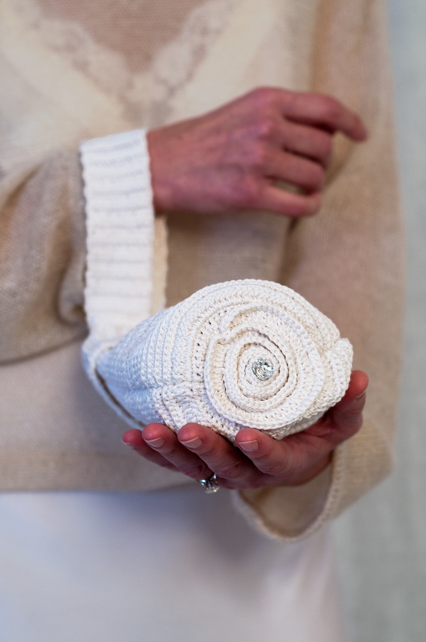 Polsiera Sposa borsetta in seta pura uncinetto