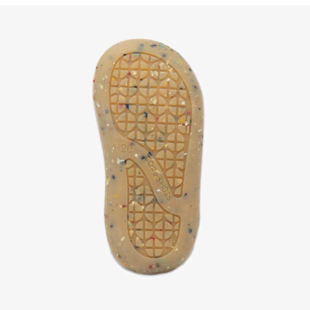 Il doppio strappo assicura una calzata semplice e veloce, perfetta per i piccoli avventurieri in esplorazione. La soletta interna estraibile, prodotta in PU riciclato, si aggiunge alla lista delle caratteristiche innovative, insieme a una suola flessibile e sottile per una migliore percezione del suolo che è fondamentale per l’equilibrio e la stabilità durante ogni passo.