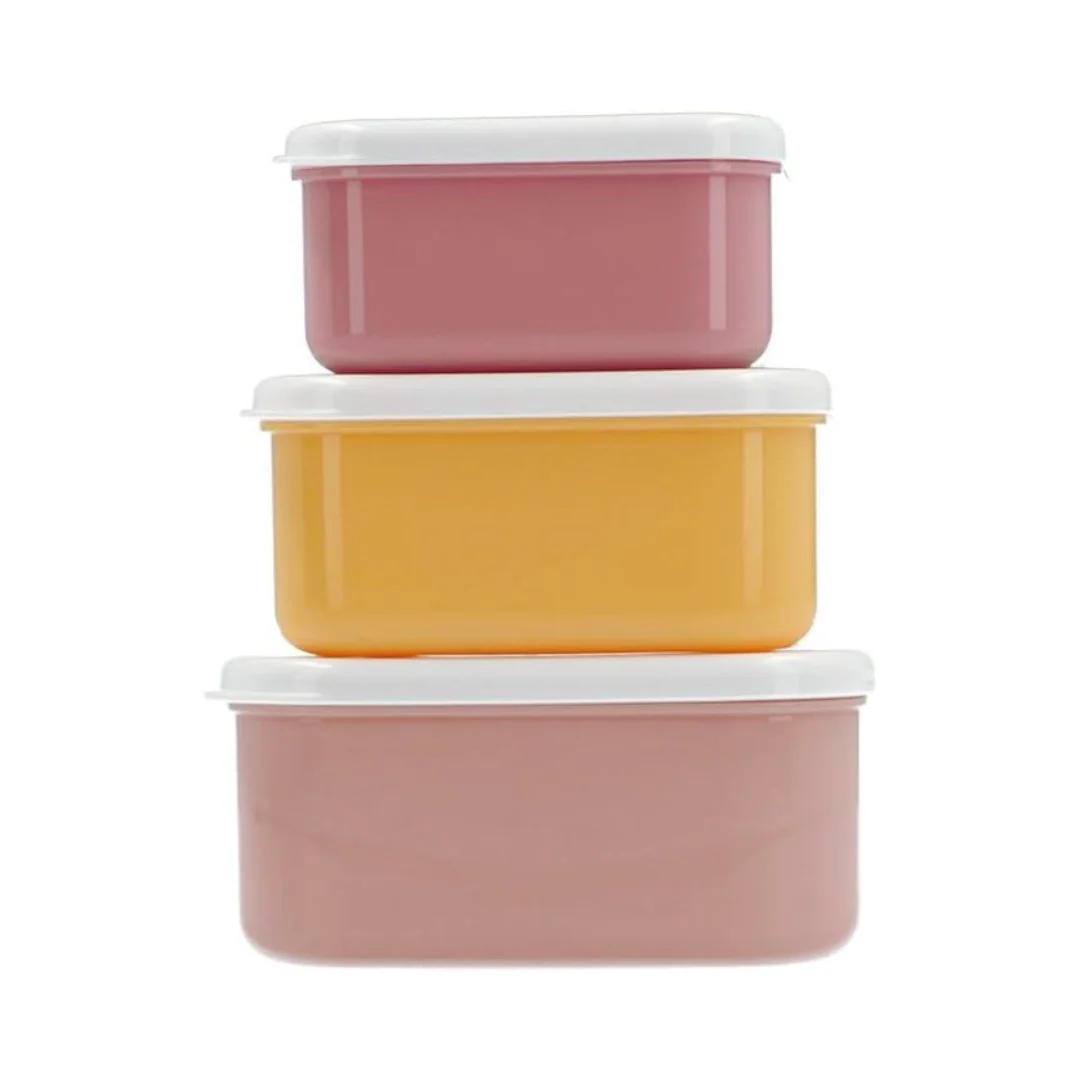 Un set di 3 contenitori per la merenda: è un modo dolce e pratico per preparare uno spuntino per la tua bambina. La più grande misura circa 12 x 12 cm, mentre la più piccola misura 9 x 9 cm! Sono perfette per panini, snack e persino frutta