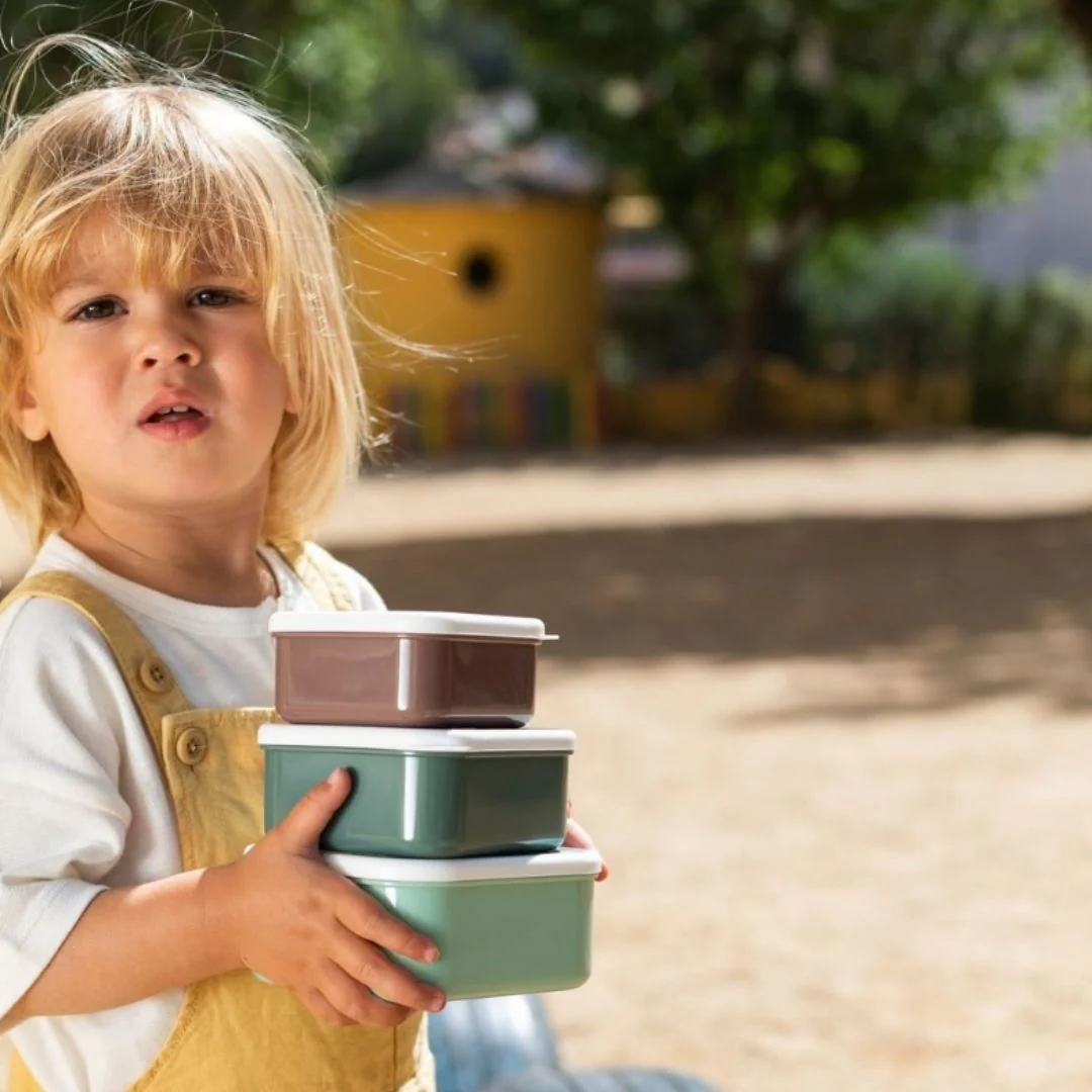 Un set di 3 contenitori per la merenda: è un modo dolce e pratico per preparare uno spuntino per la tua bambina. La più grande misura circa 12 x 12 cm, mentre la più piccola misura 9 x 9 cm! Sono perfette per panini, snack e persino frutta