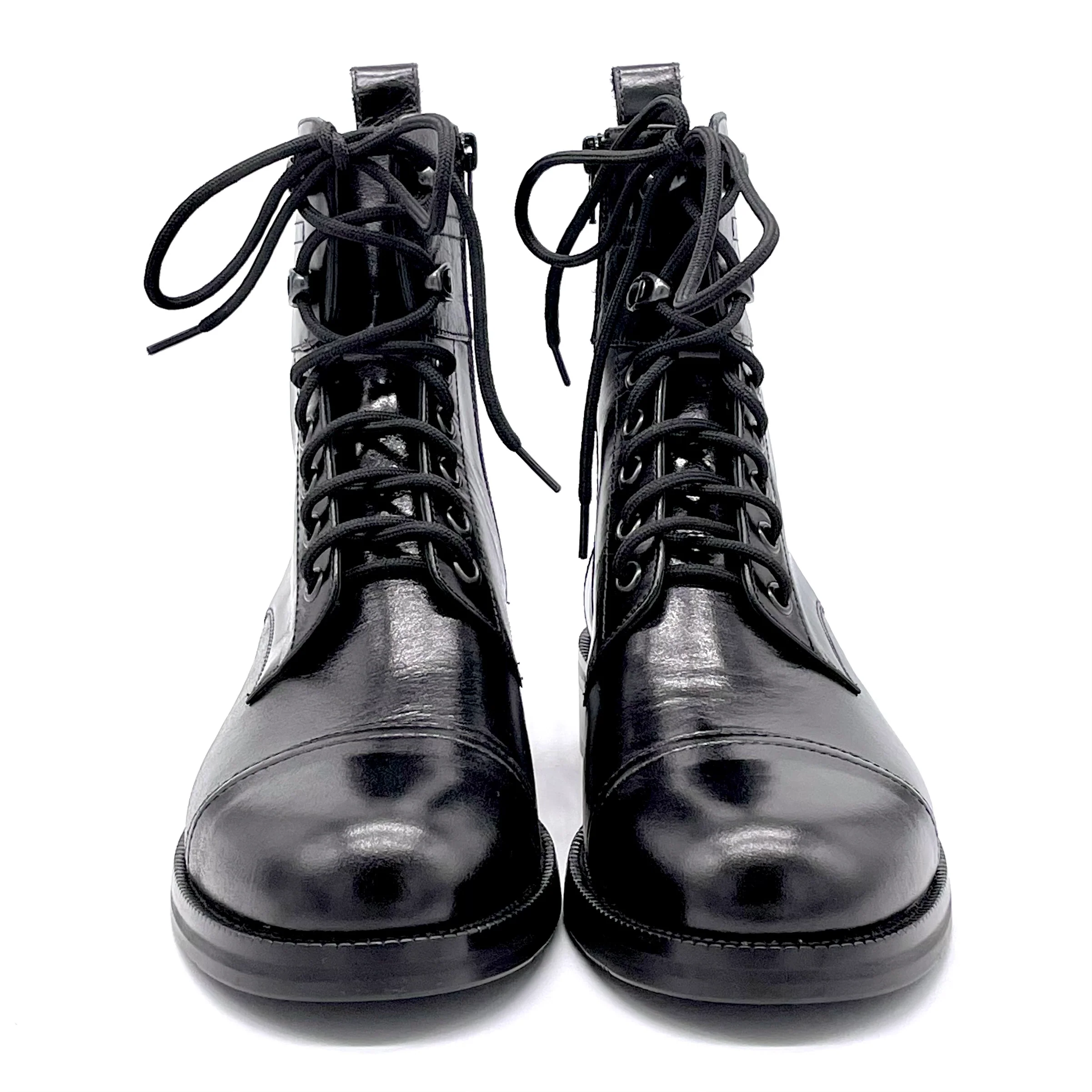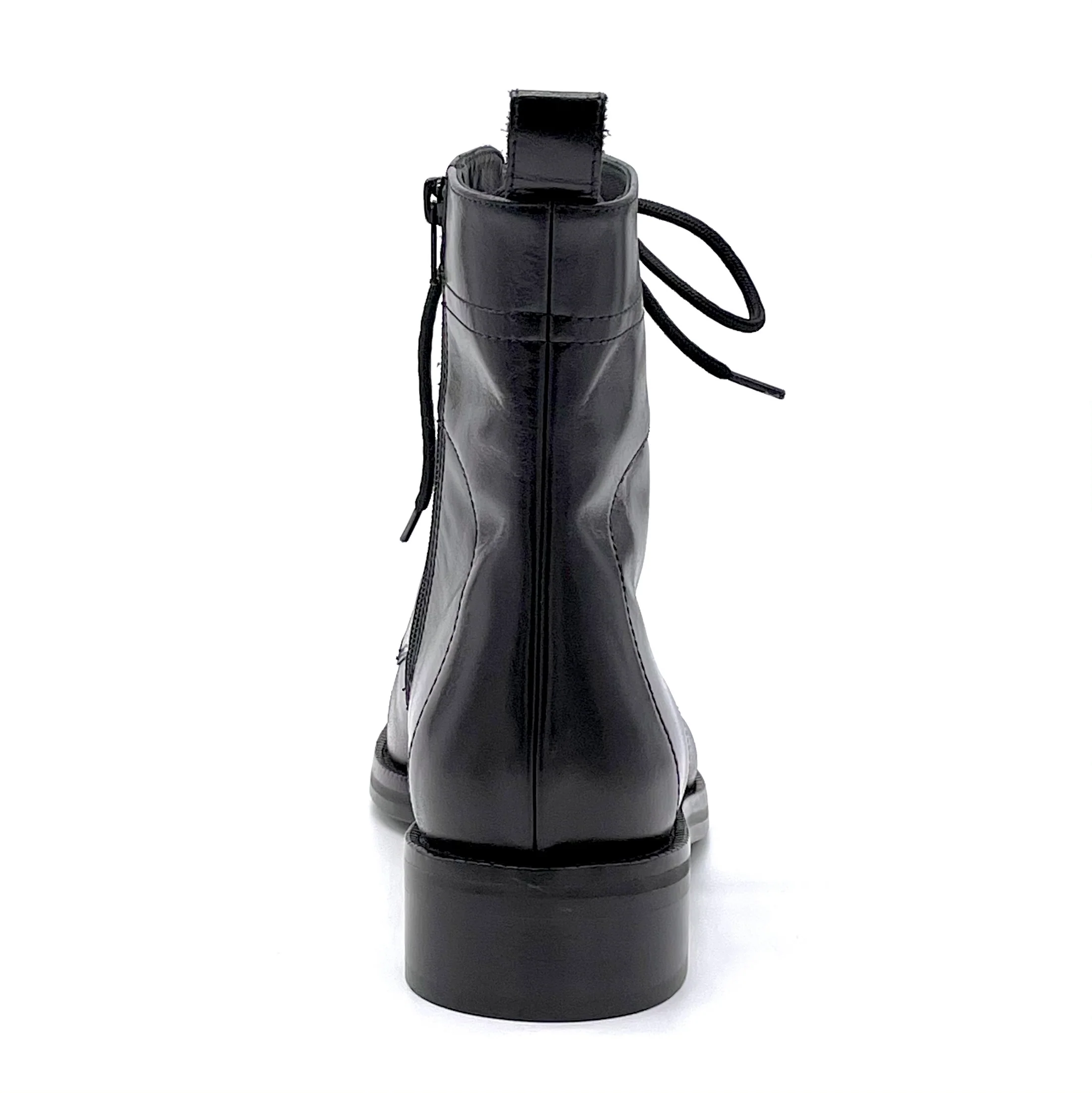 Stivaletto allacciato in pelle nera. Fodera in pelle, suola in gomma. Altezza tacco 3,5 cm.