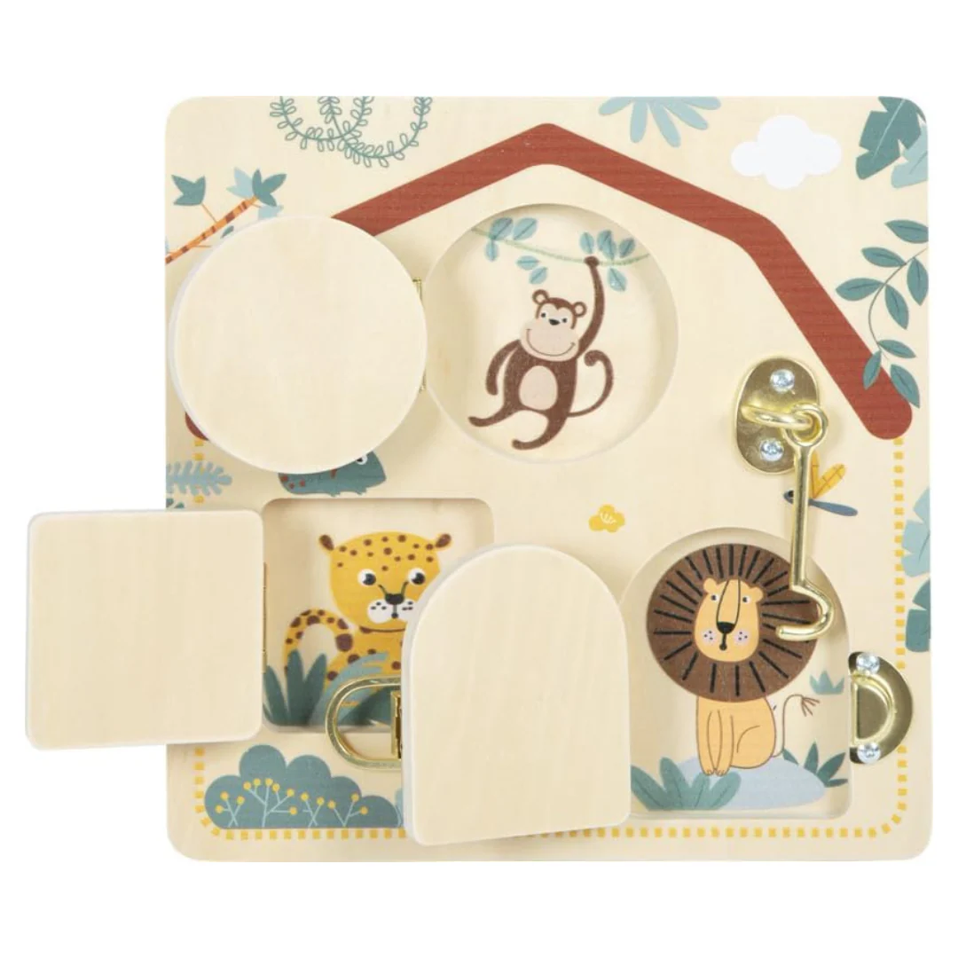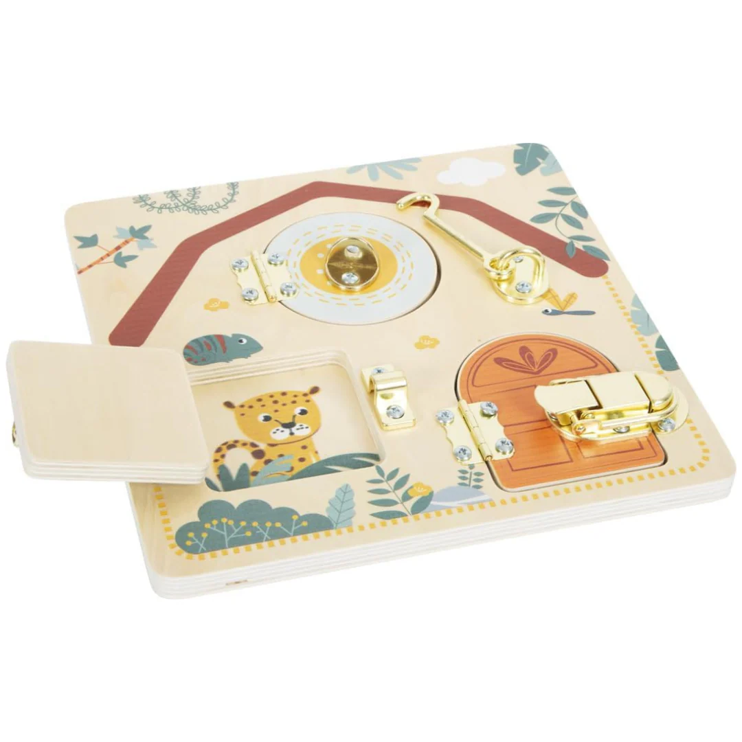 Tavoletta di motricità Serratura e catenaccio – Giocattolo in Legno Diverse Chiusure