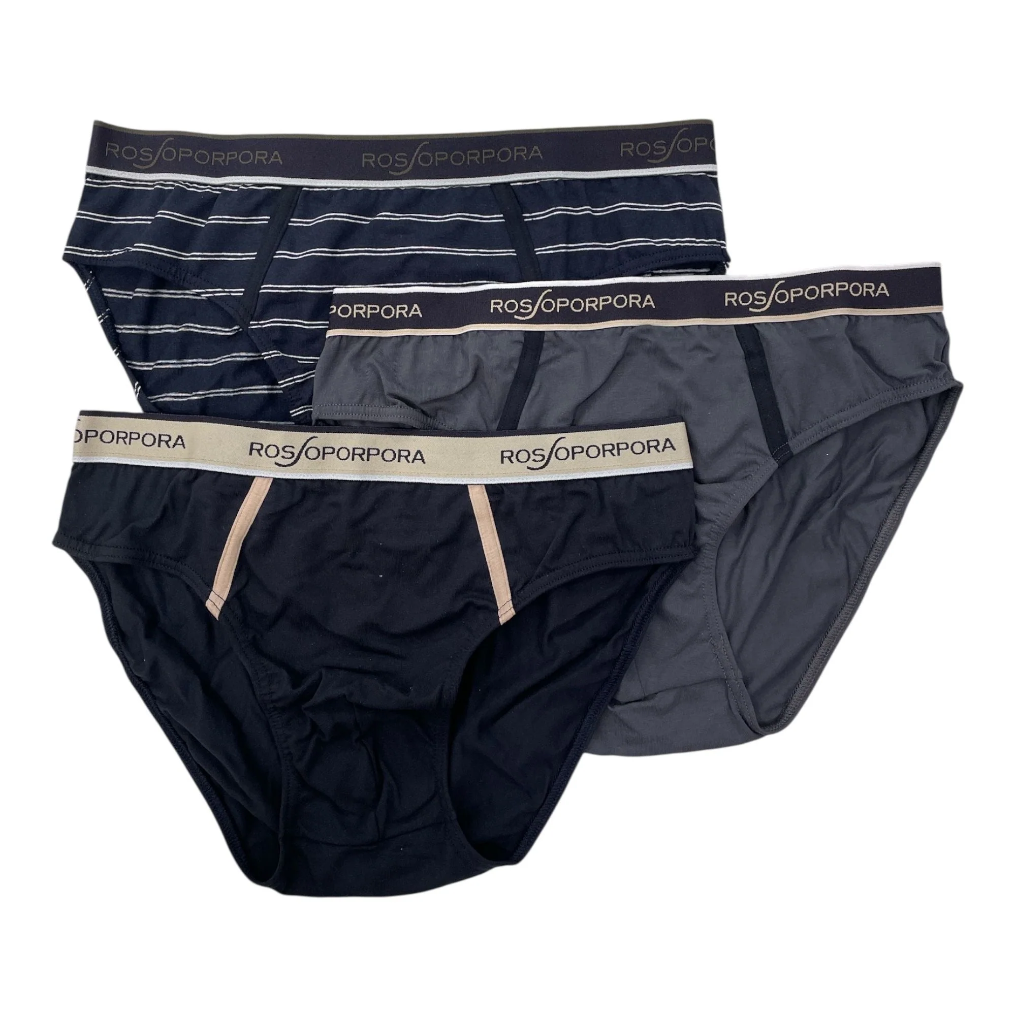 L’elastico esterno con logo Rossoporpora aggiunge un tocco sportivo e contemporaneo, oltre a mantenere saldamente lo slip in posizione durante tutta la giornata. Un set da tre paia perfetto per l’uomo che vuole un intimo affidabile e stiloso per ogni occasione.
